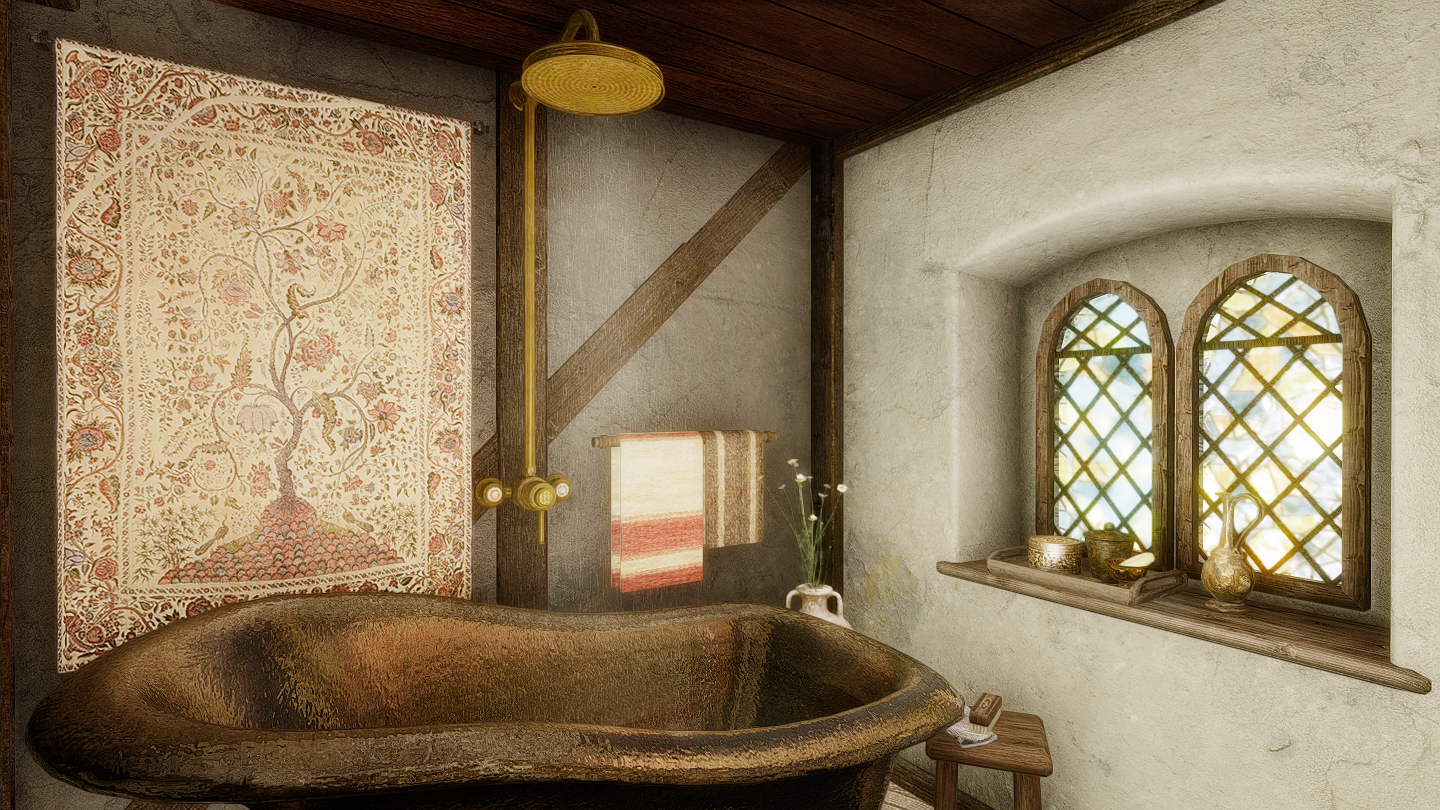 始めはおしゃれなお風呂に惹かれてこちらの家MODを導入していました。滞在するほどにいろんな魅力や機能を知ることができ、今ではお気に入りの一つです。