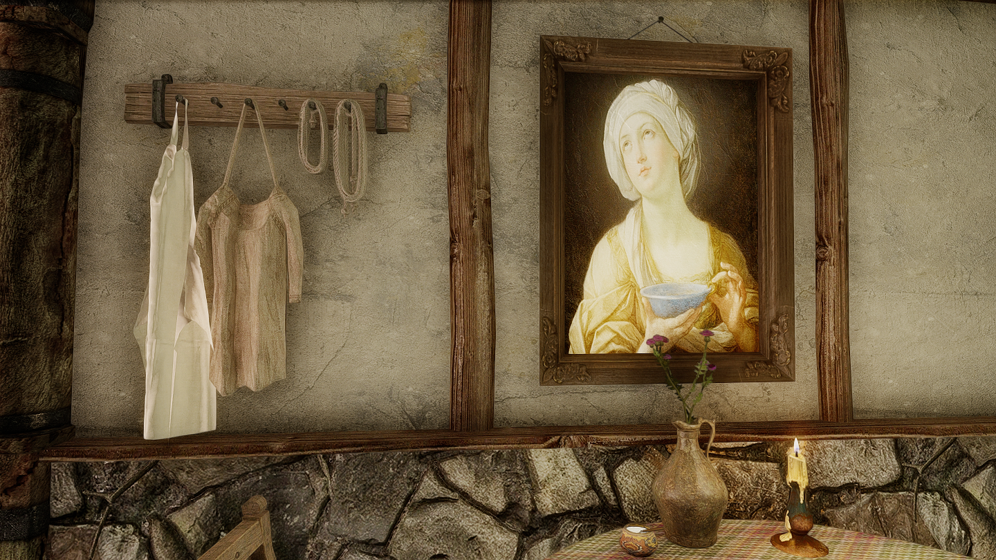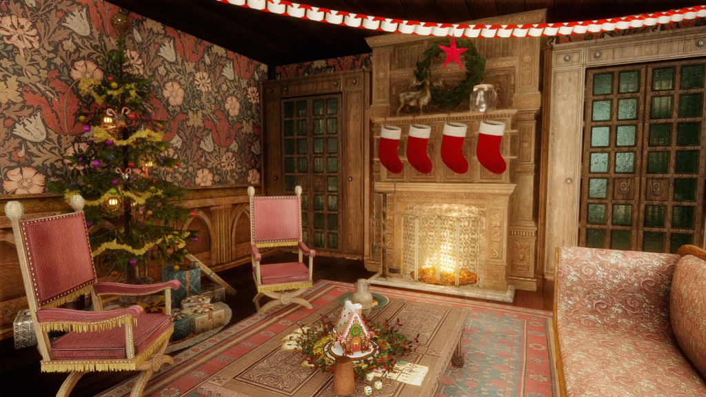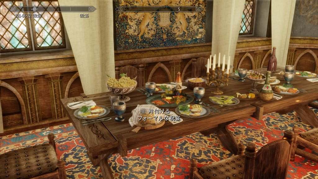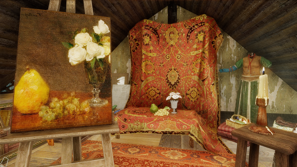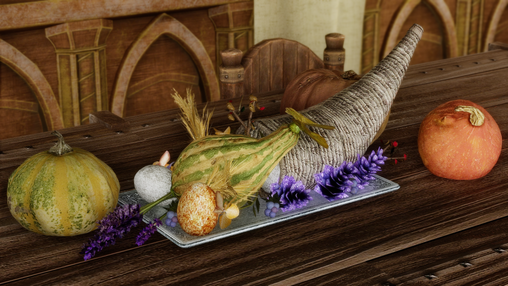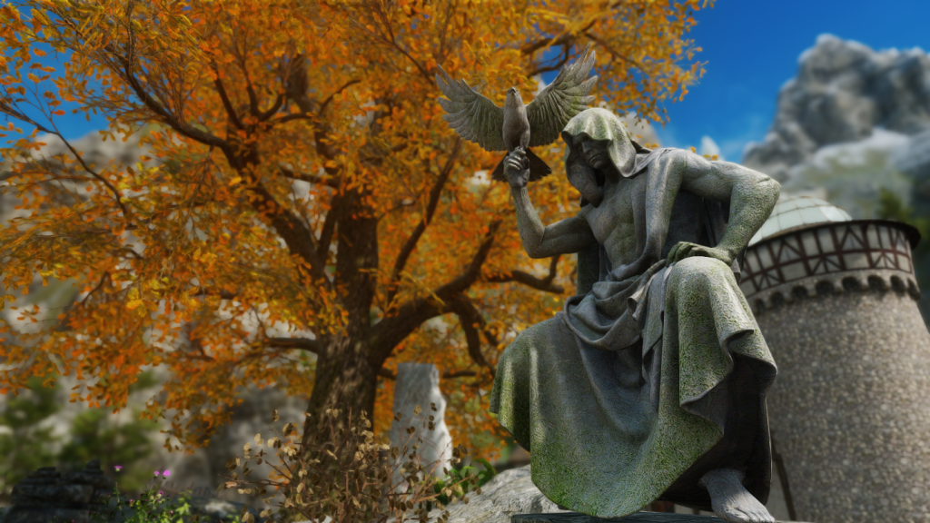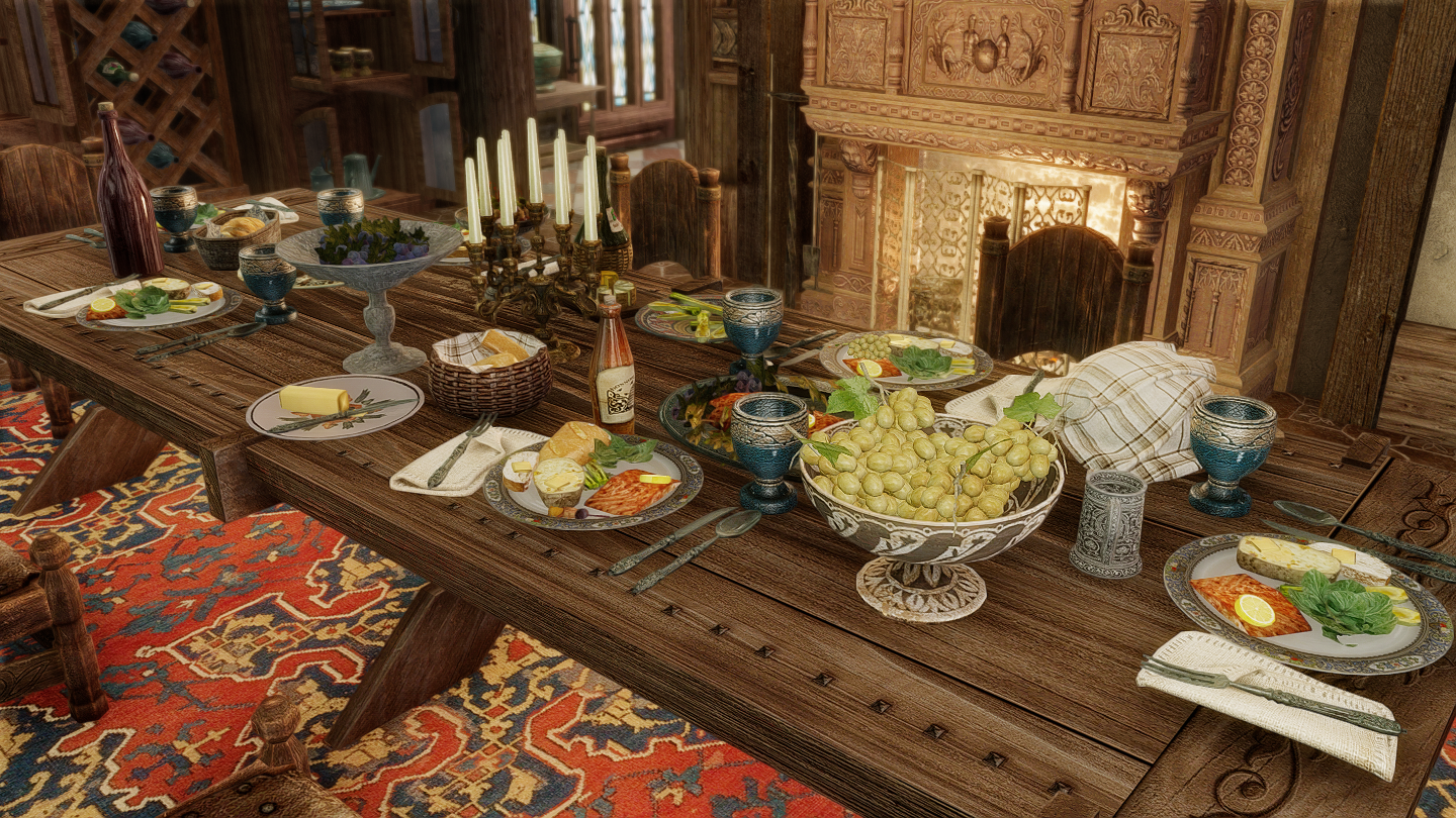 季節の飾り付けをしたり、「Seasons of Skyrim SKSE」を導入して撮ったものも混ぜています。Seasons~は撮影中に初めて導入してみましたが、個人的には木々の色めきが綺麗な秋バージョンが特に良かったです。