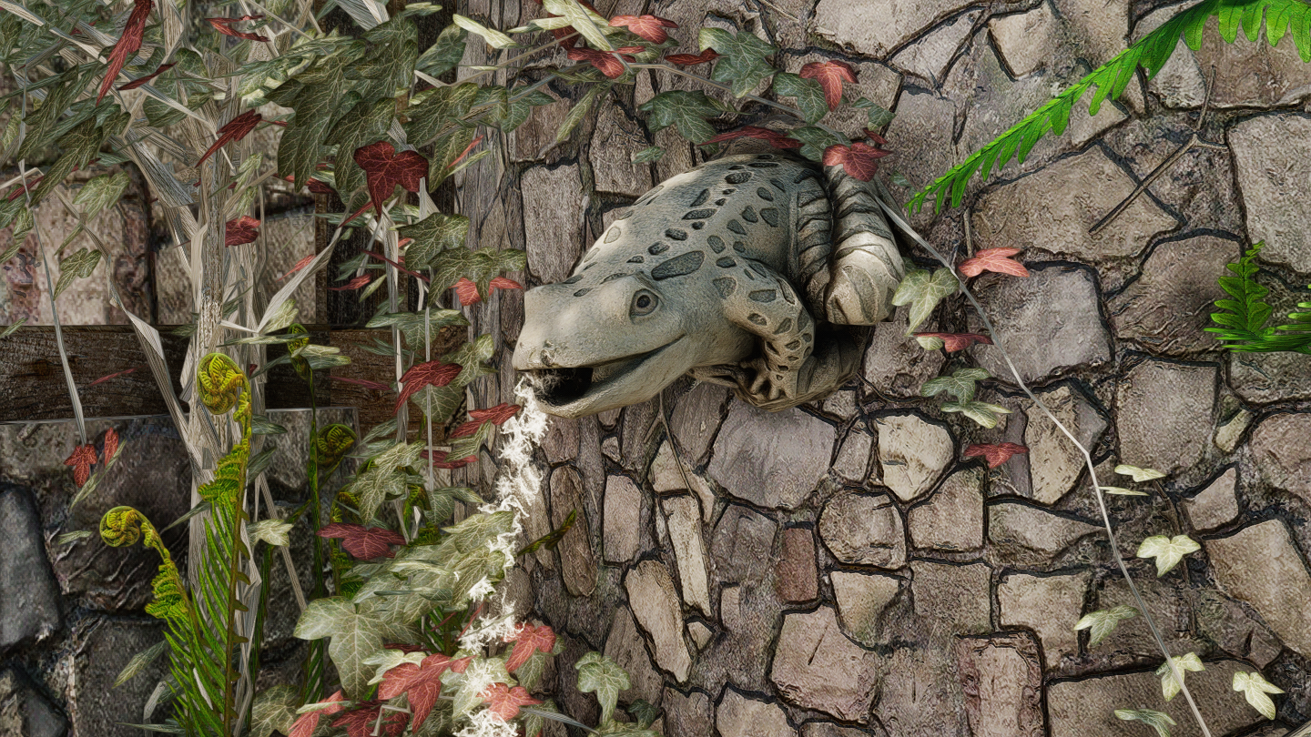 敷地内にはたくさんの美しい彫像や植物も。画像3、4枚目のカラスたちはアニメーション付きでした。