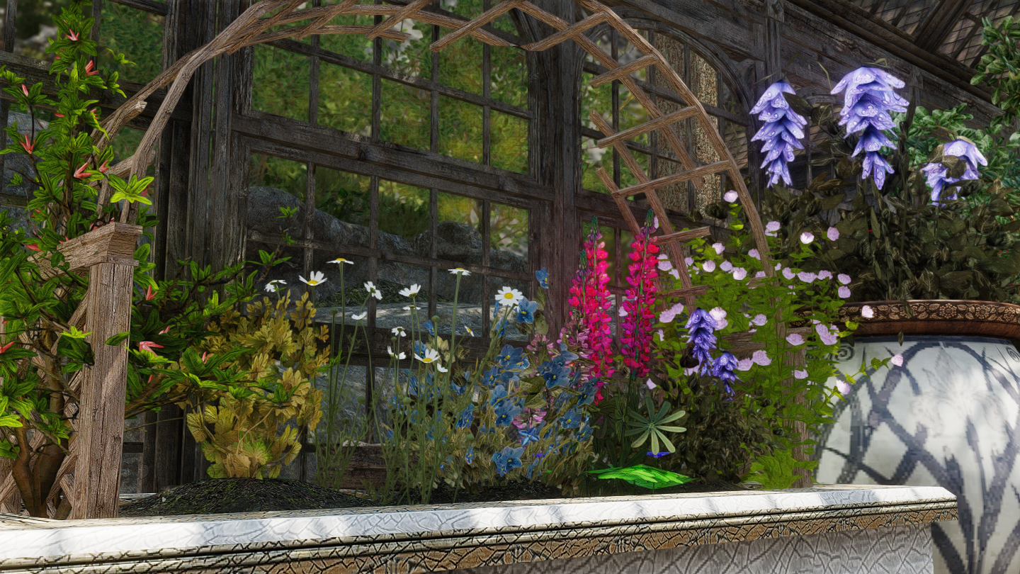 色とりどりの植物や美術品たちに囲まれたお家のMODです。Descriptionによると何度も作り直しながら細部までこだわって作成されたとのことで、お邪魔していてそれらを強く感じました。見どころが多く、屋内外のどこを撮っても映画のワンシーンのような雰囲気です。