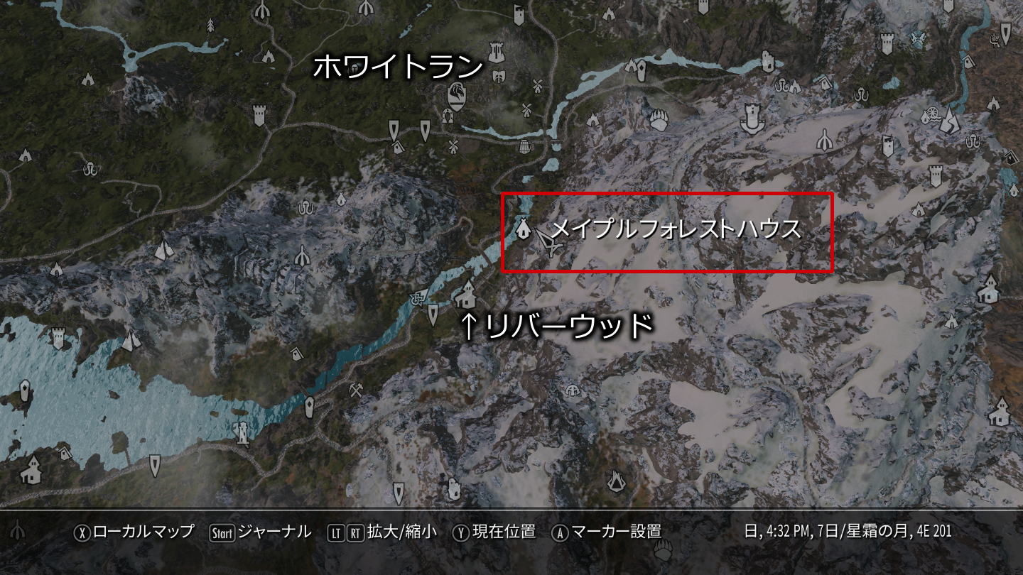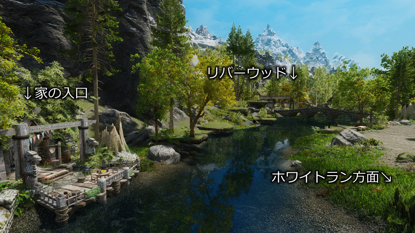 徒歩で向かう場合はリバーウッドからホワイトラン方面へ川岸を歩いていくと見えてきます。