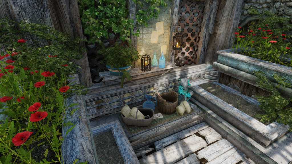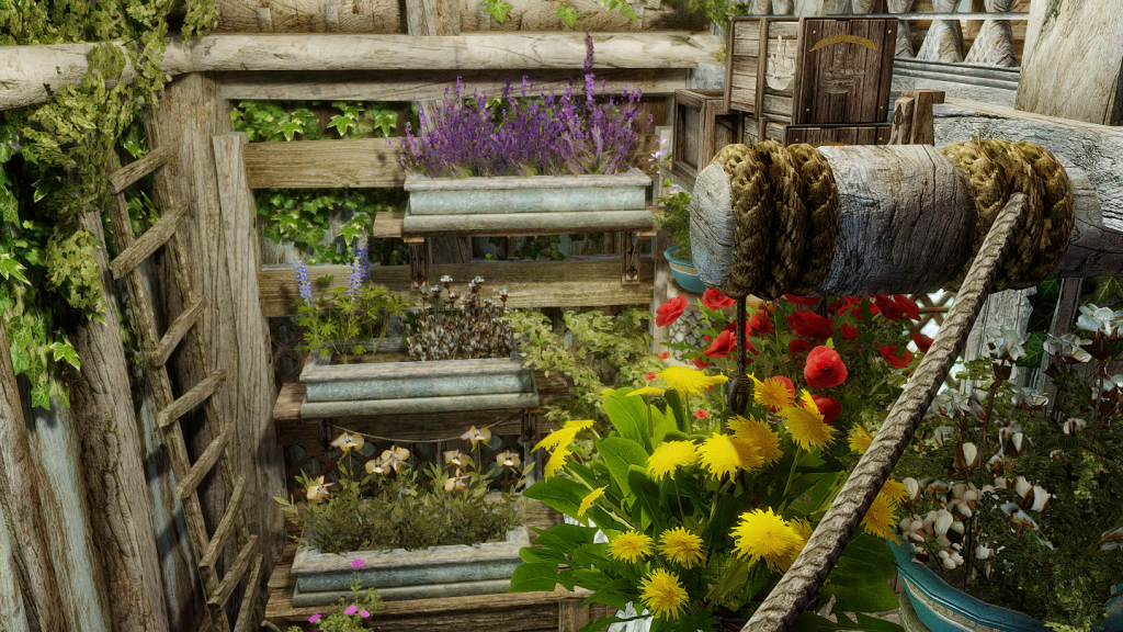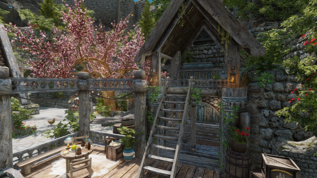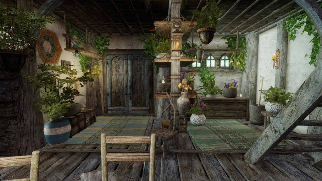 森の中に佇む隠れ家のような家MODです。たくさんの草花が屋内外に飾られており、自然を感じながら穏やかに過ごせそうな場所になっています。
