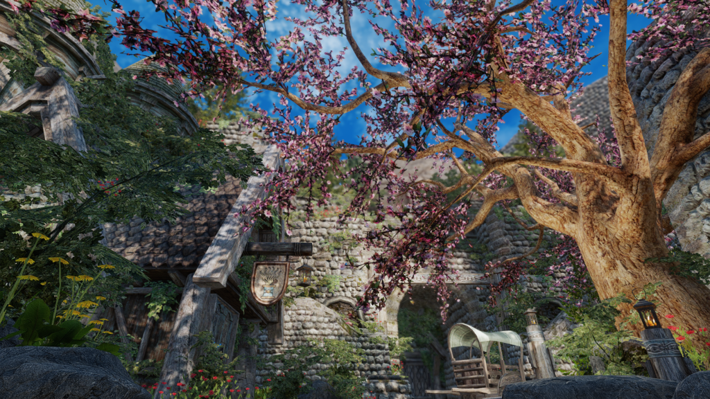 新規ワールドに入ったところにあるお庭です。植物でいっぱいです。