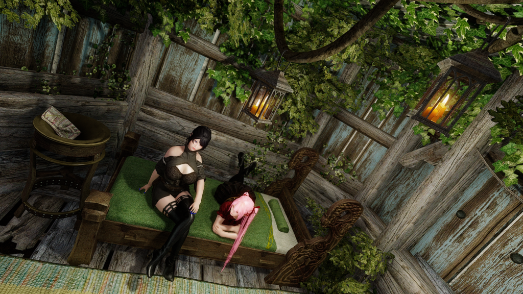 塔と繋がるはしごもあるフロアです。ロフトのようなスペースには錬金器具もあります。