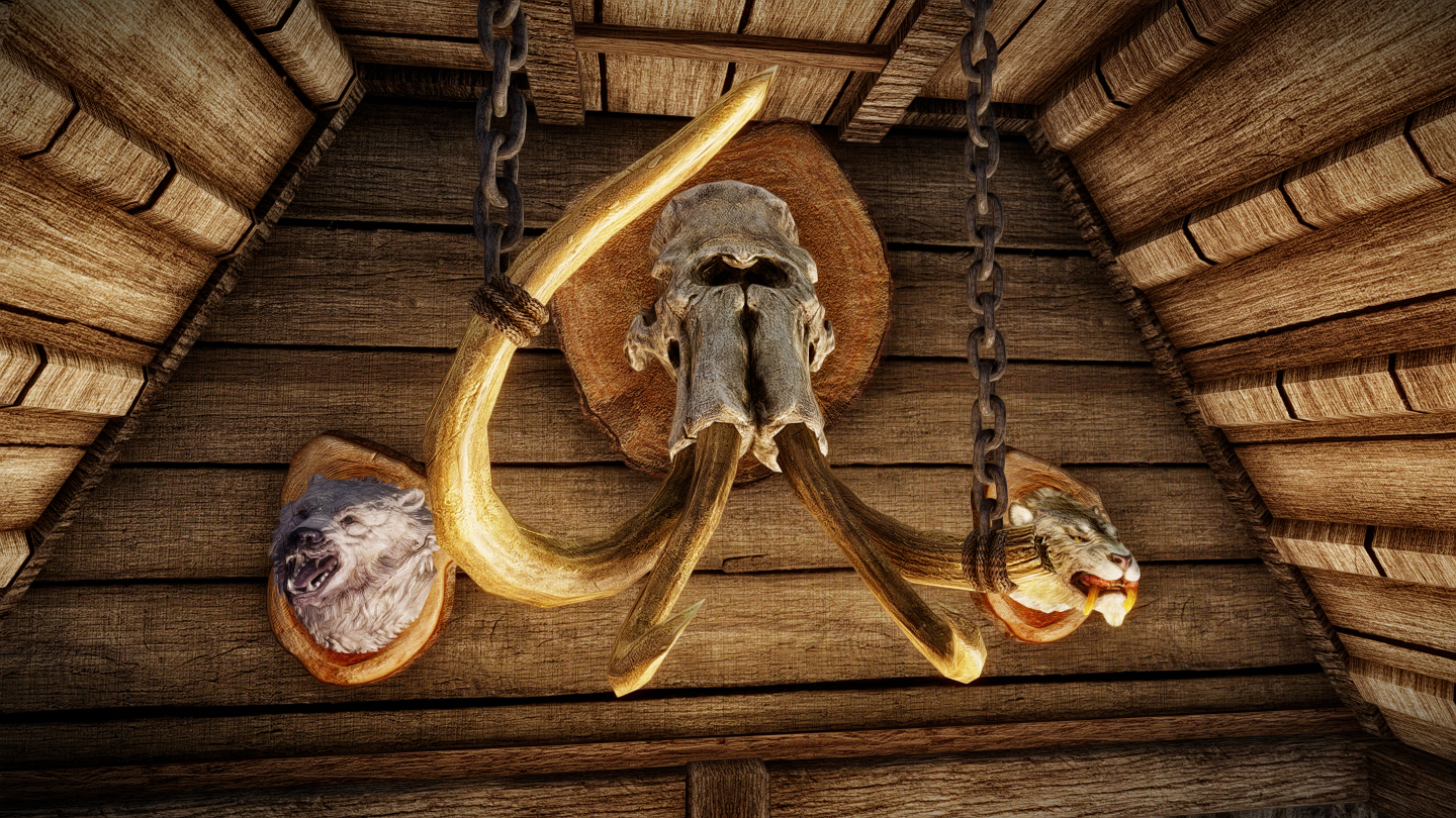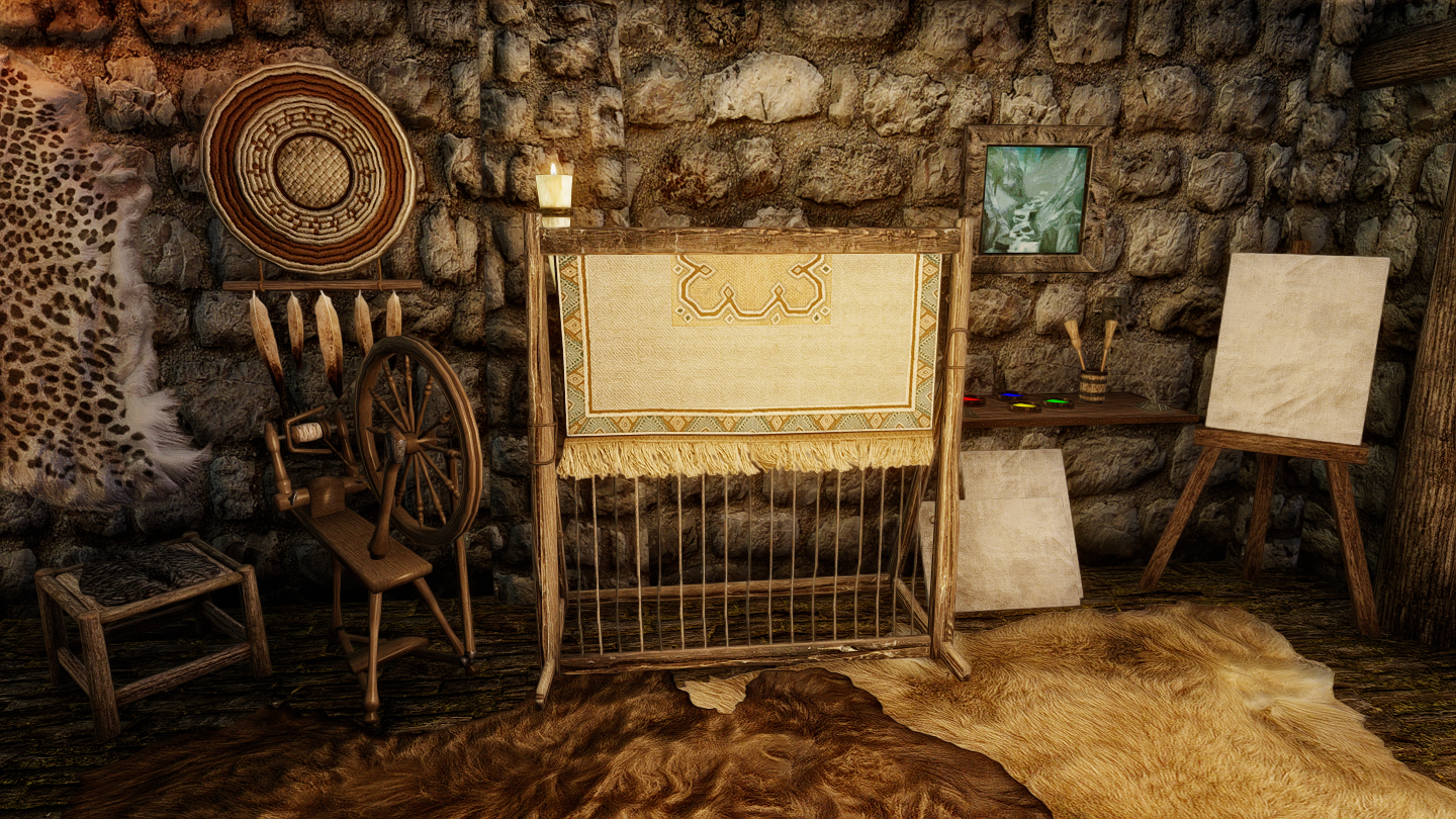 狩りや機織り・絵画など、前の住人である狩人一家の好きだったもの・得意だったものたちが屋内に飾られています。