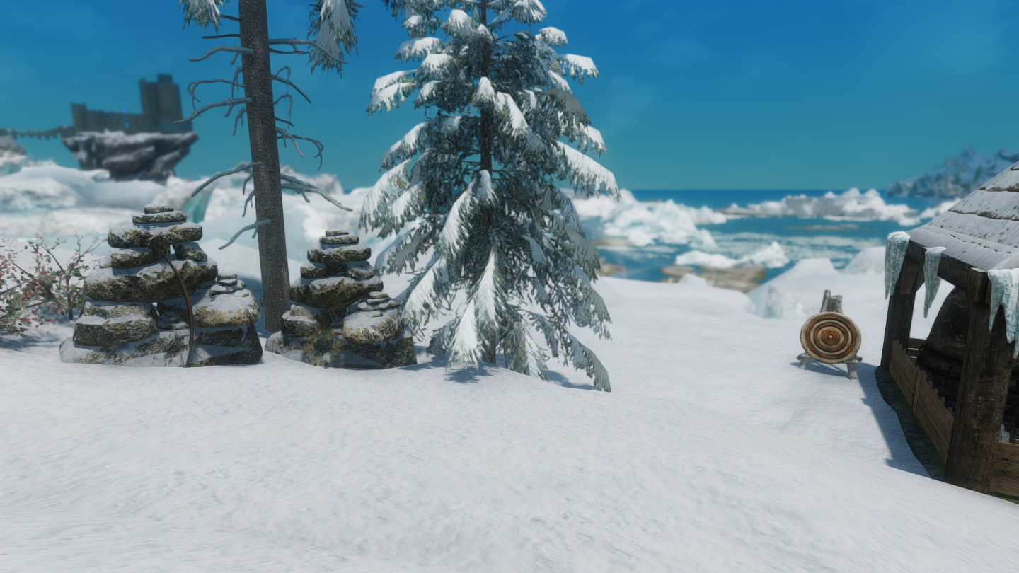 天候や環境によっては、ウィンターホールドの街並みや大学などがかすかに見えることも。