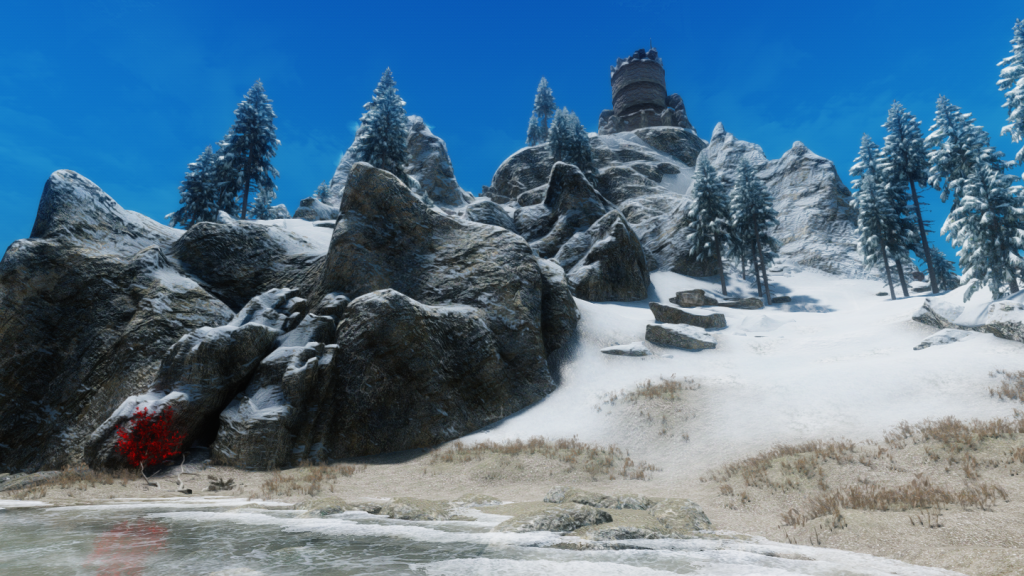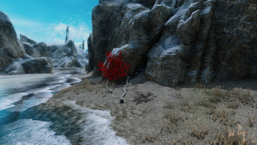MOD導入直後から洞窟の入口にFT可能です。赤い木が目印になっています。