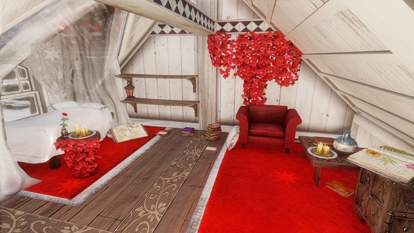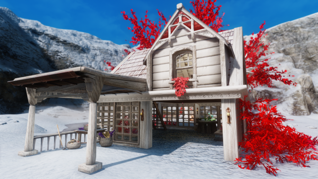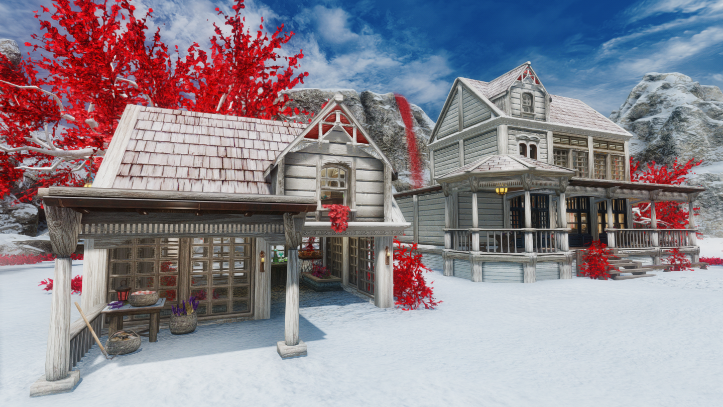 新規ワールドに、赤と白のカラーリングが特徴のかわいい邸宅を追加するMODです。ドーンスターの北側に入口が追加されています。