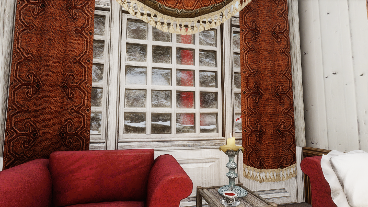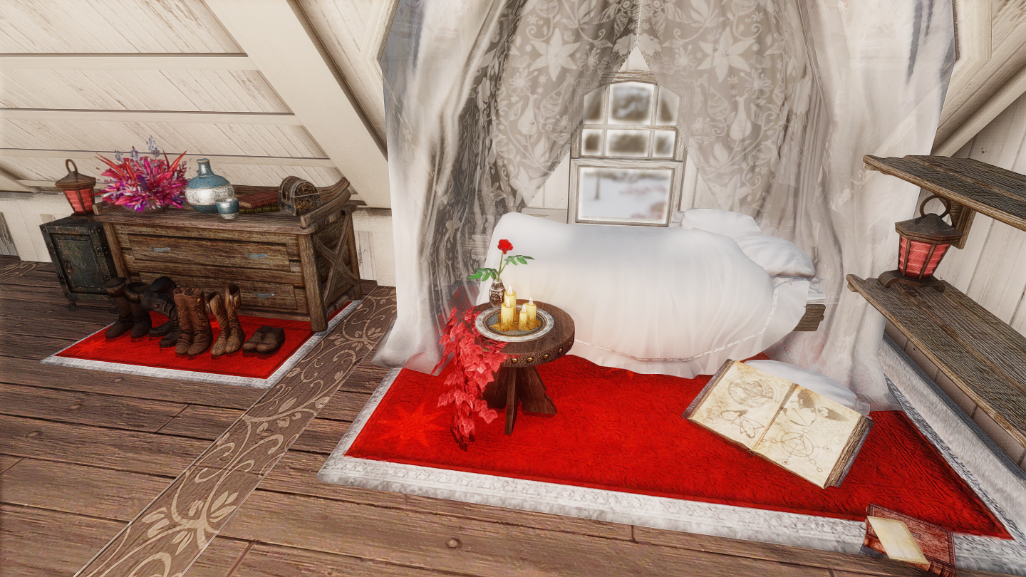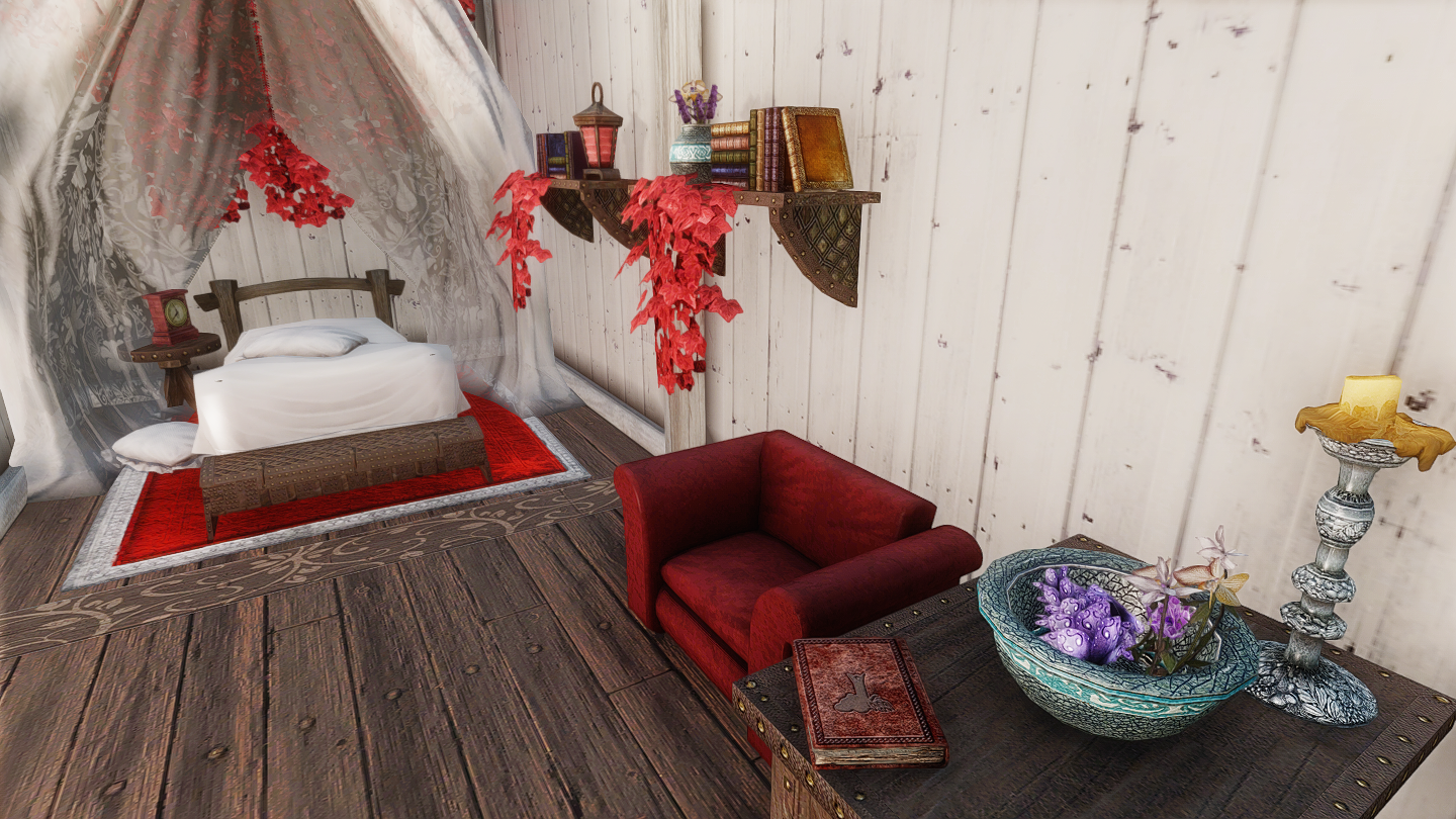 新規ワールドに、赤と白のカラーリングが特徴のかわいい邸宅を追加するMODです。ドーンスターの北側に入口が追加されています。