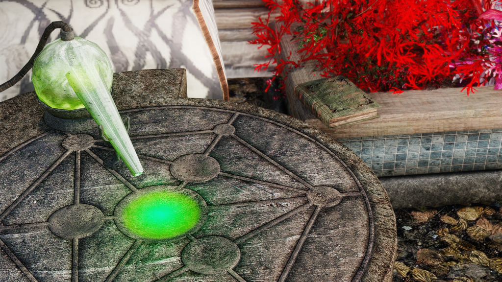 錬金器具そばの花壇に錬金のスキルブックも置かれています。
