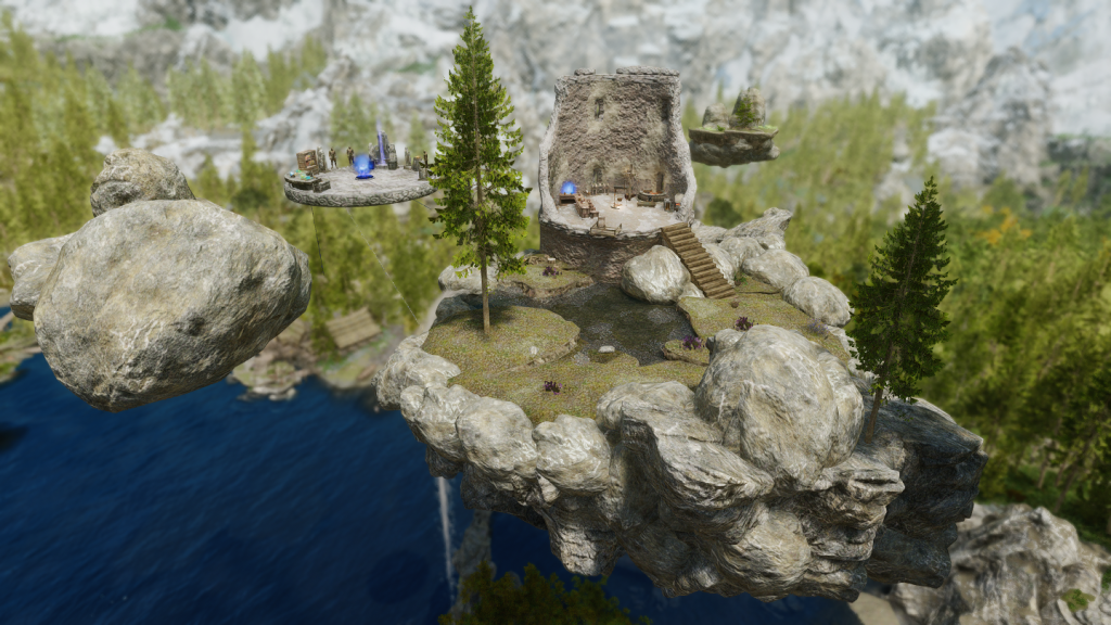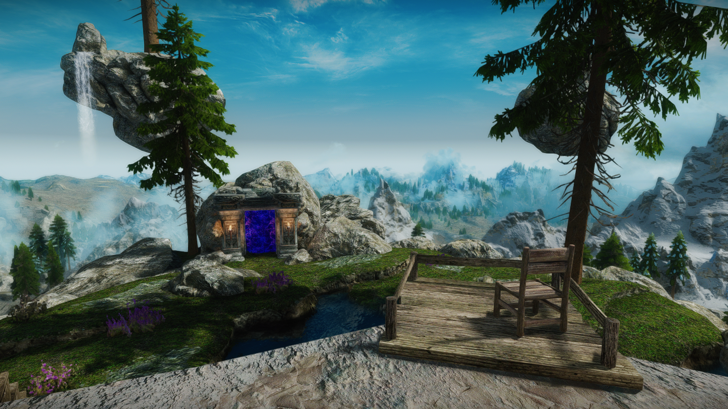 ファルクリース地方・イリナルタ湖の上空に浮遊島タイプの家を追加するMODです。島にあるゲートから、ソブンガルデの勇気の間のような空間へ向かうこともできます。