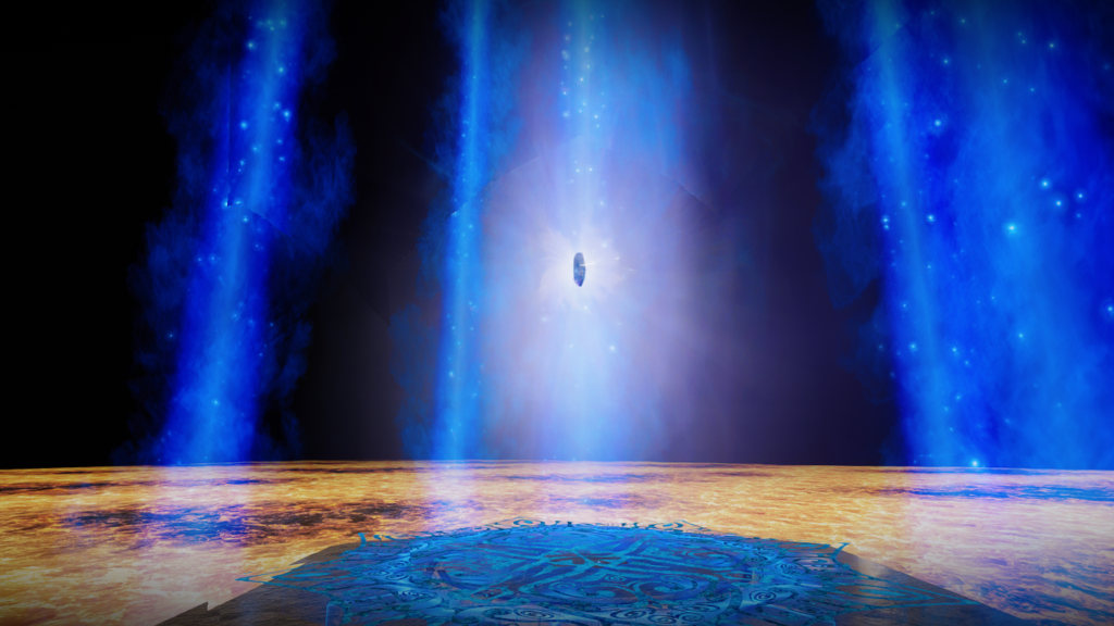 島中央の青い光に触れると浮遊島1に戻れます。