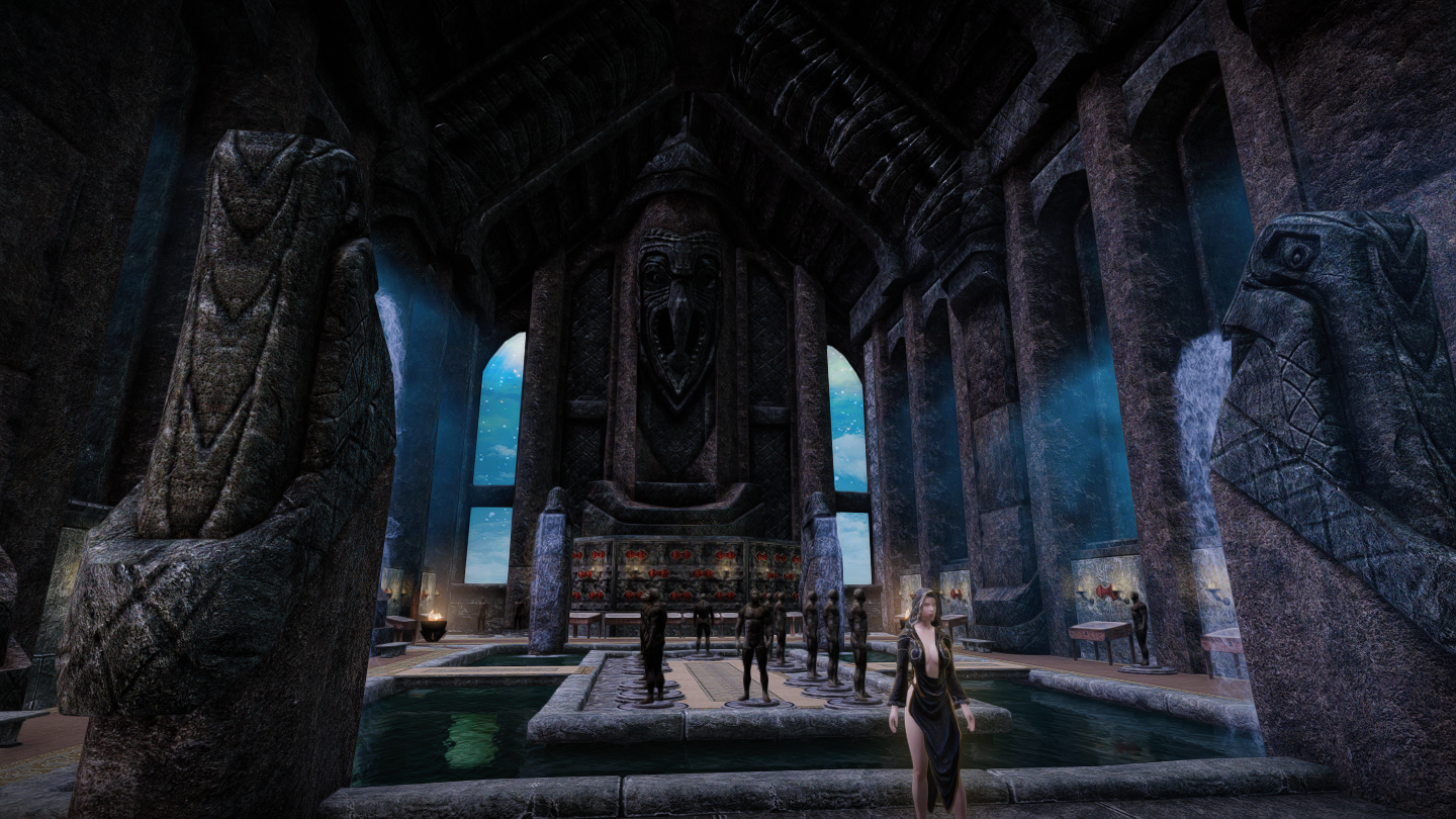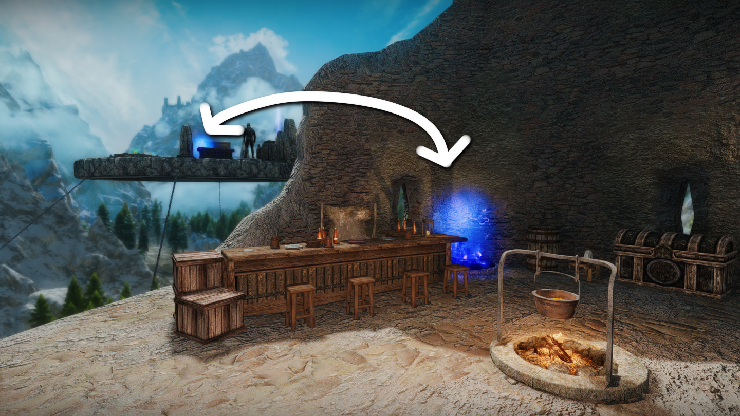 ファルクリース地方・イリナルタ湖の上空に浮遊島タイプの家を追加するMODです。島にあるゲートから、ソブンガルデの勇気の間のような空間へ向かうこともできます。