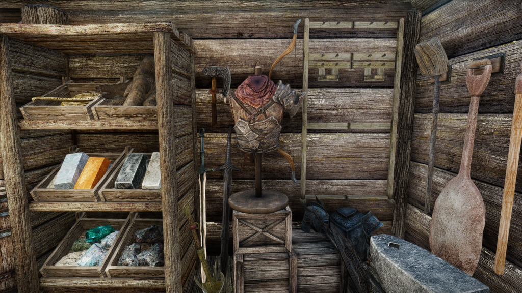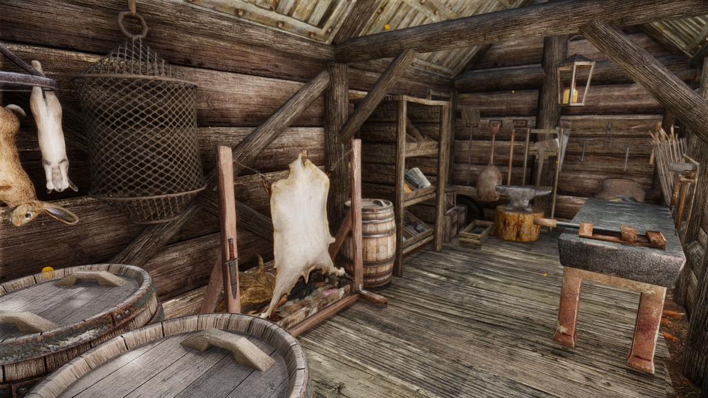 - 小屋:皮なめしの棚/金床/砥石/作業台