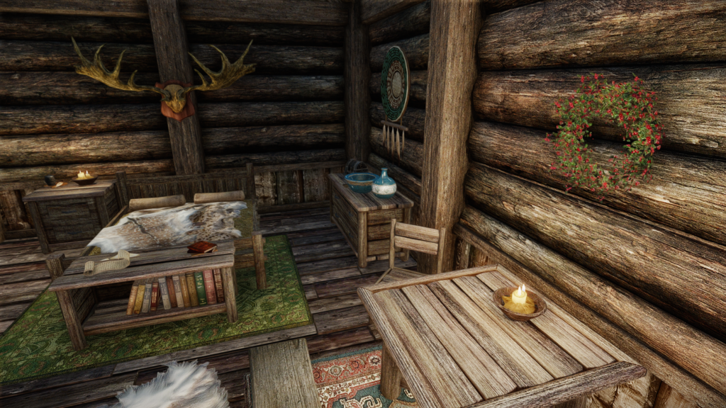 素朴な家でありながら、薪を使ったギミックや可愛いカカシがあったりと、イマーシブかつ個性も感じられる家になっています。ESLフラグがついていて導入しやすいところもいいですね。
