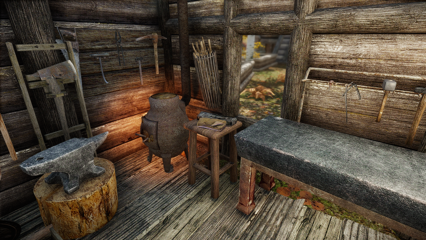 - 小屋:皮なめしの棚/金床/砥石/作業台