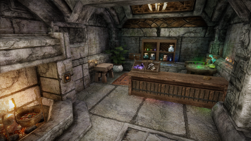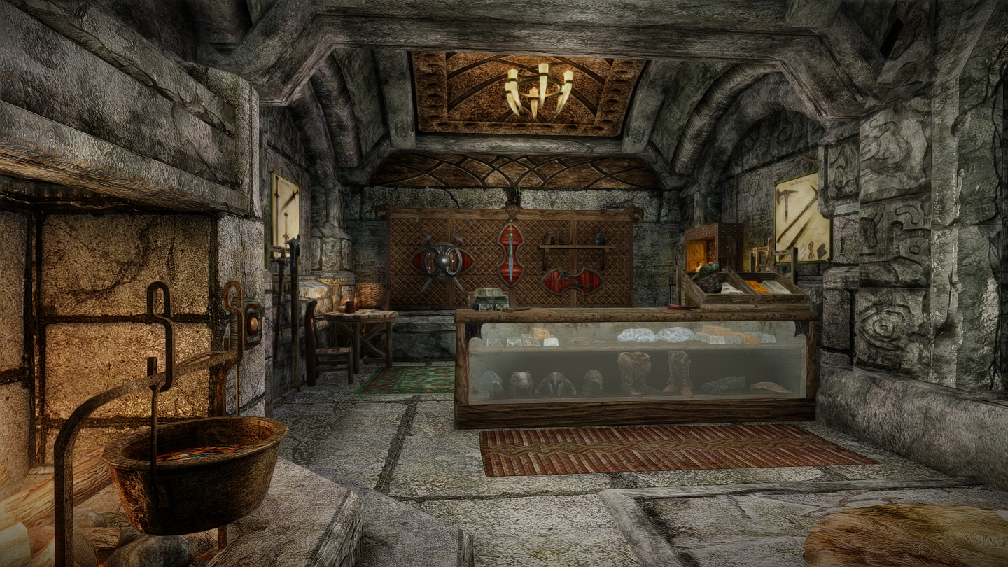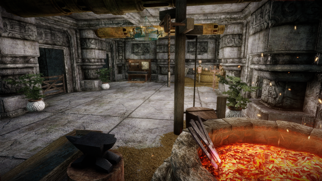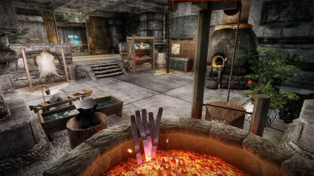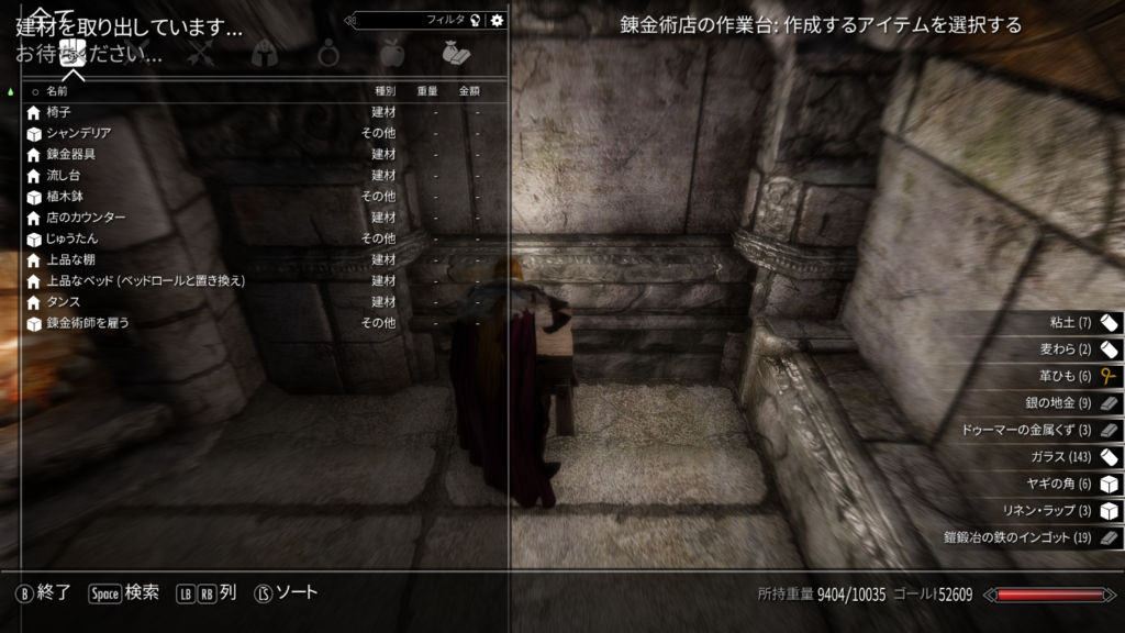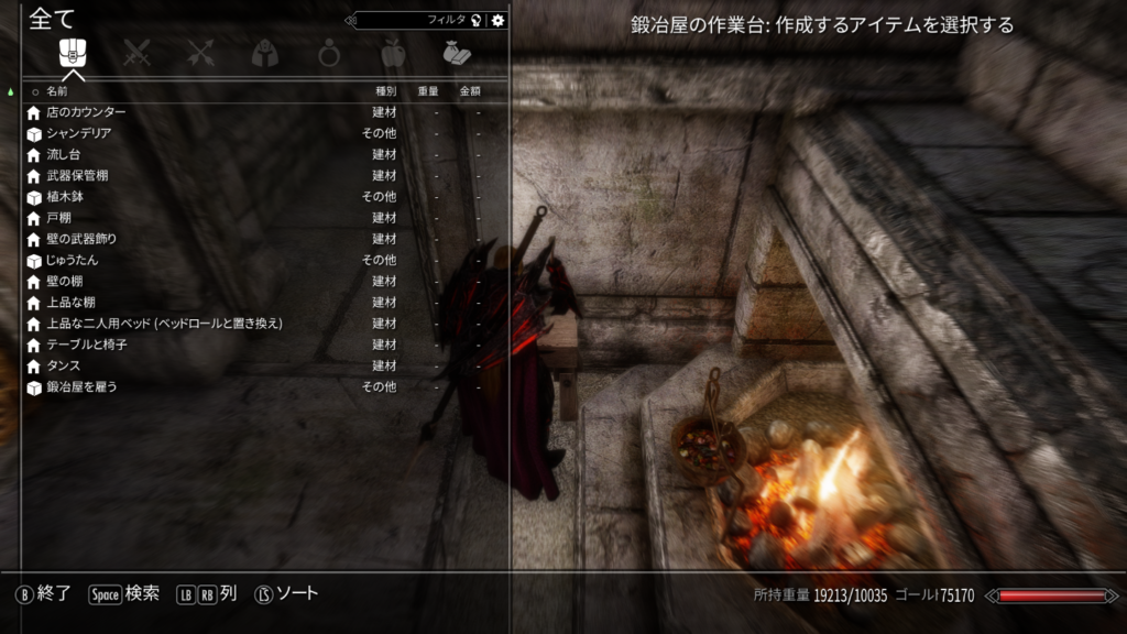 - 地下室:作業台/溶鉱炉/鋳造器具/皮なめしの棚/錬金器具/浸透室/付呪器/杖用の付呪器/マネキン