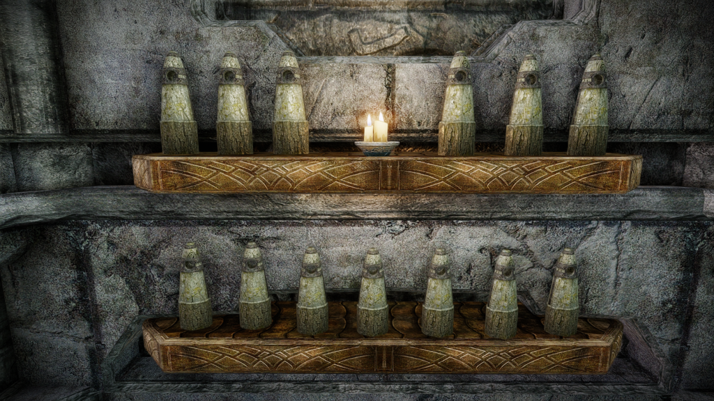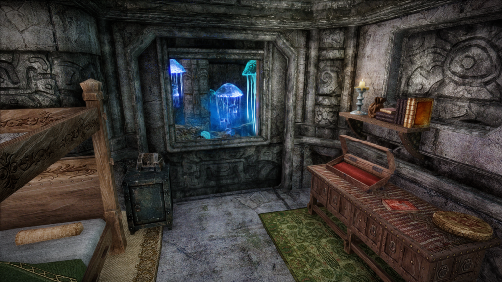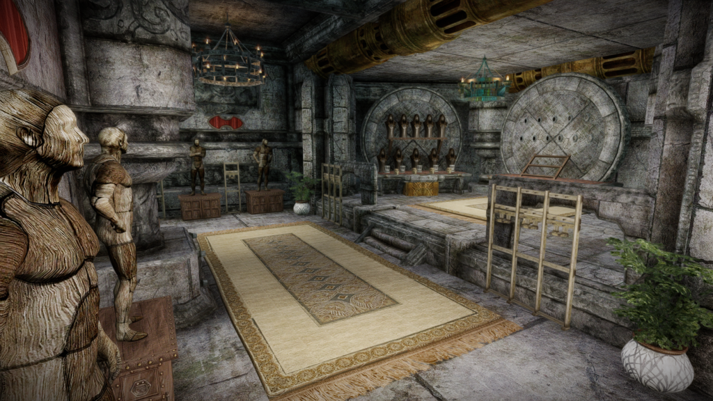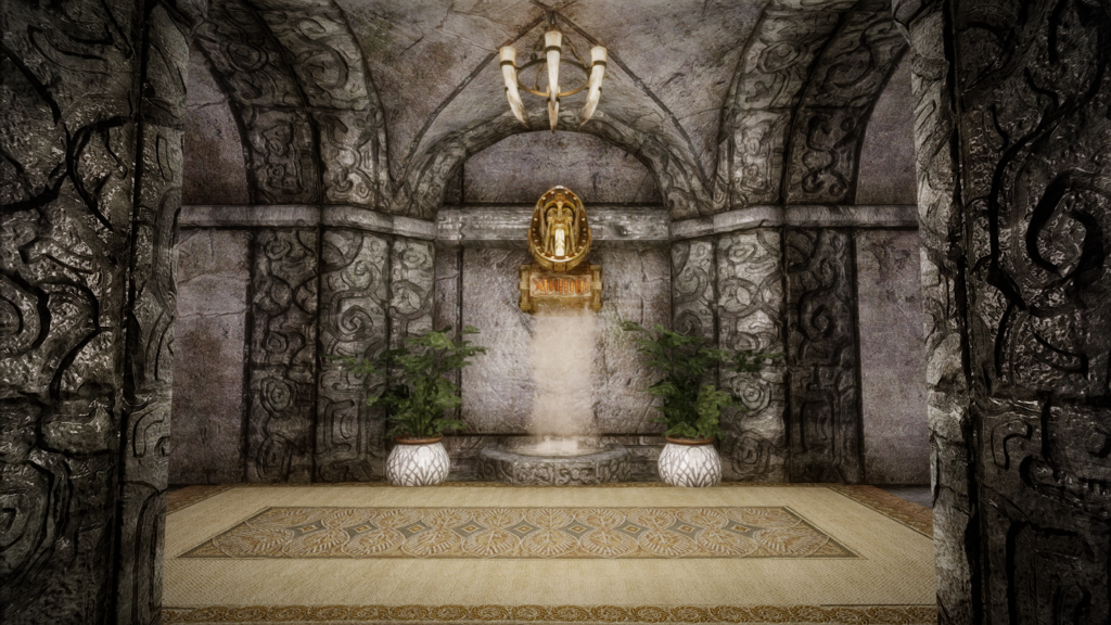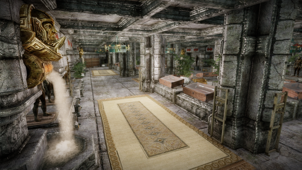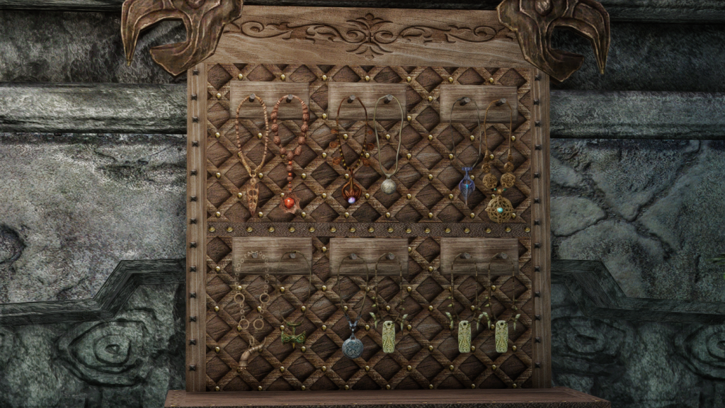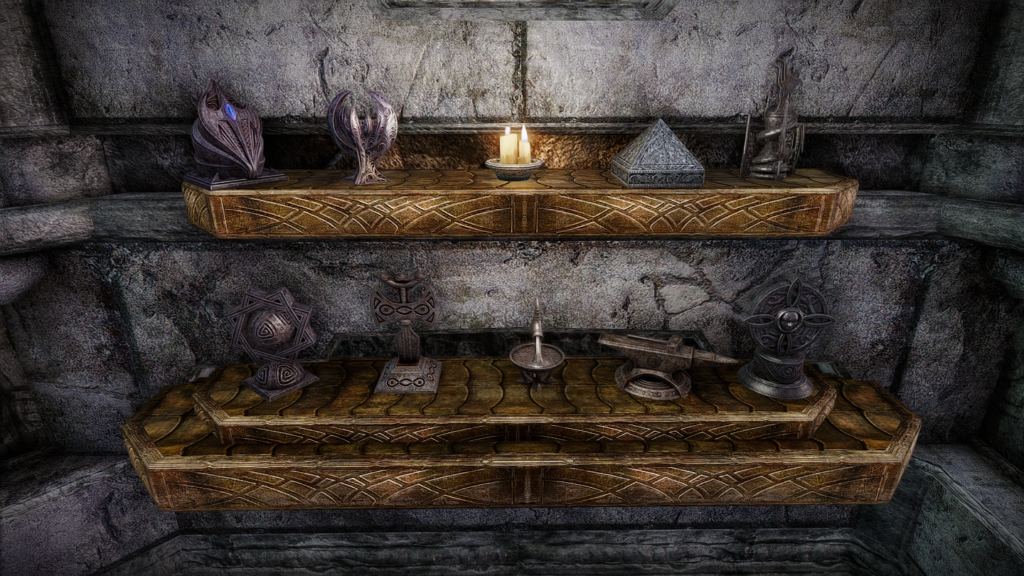 冒険で入手できる戦利品や、デイドラアーティファクトなどを飾ることができる部屋です。画像3~4枚目は実際に飾ってみたものです。
