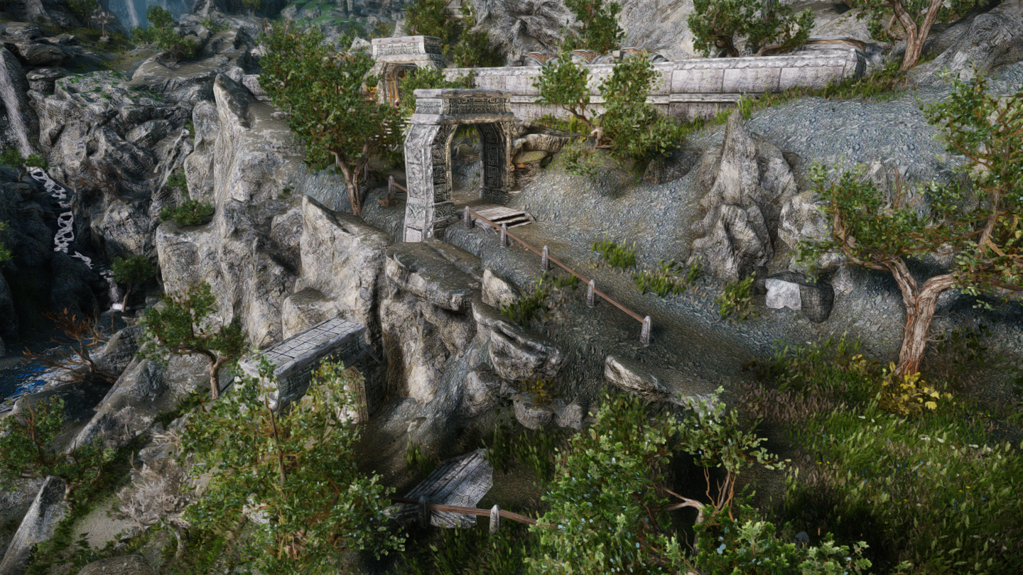 - 通路のアーチと火鉢:防衛壁の手前の通路に、石の門とかがり火を追加