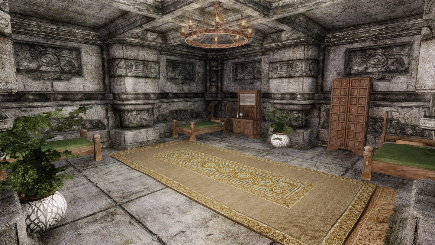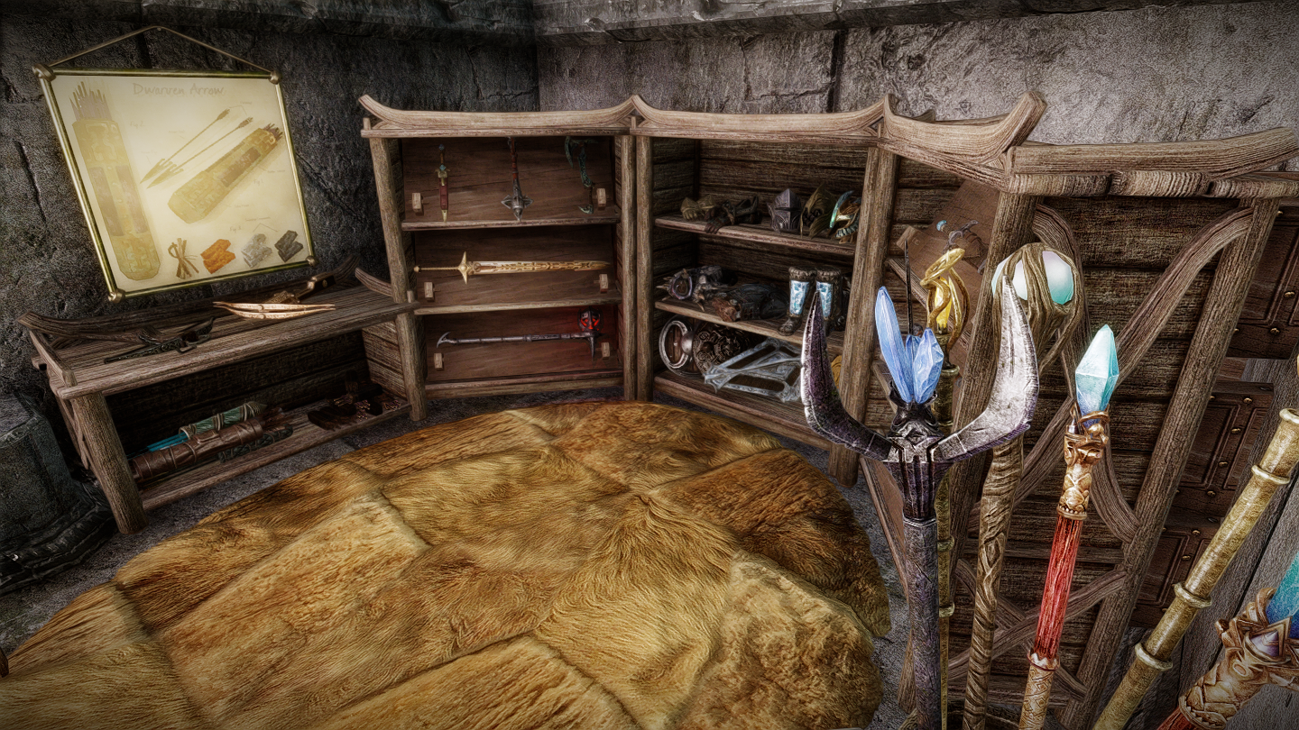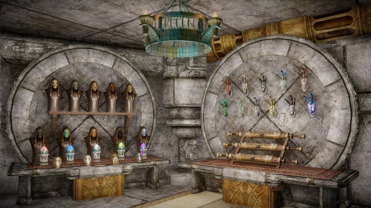 冒険で入手できる戦利品や、デイドラアーティファクトなどを飾ることができる部屋です。画像3~4枚目は実際に飾ってみたものです。