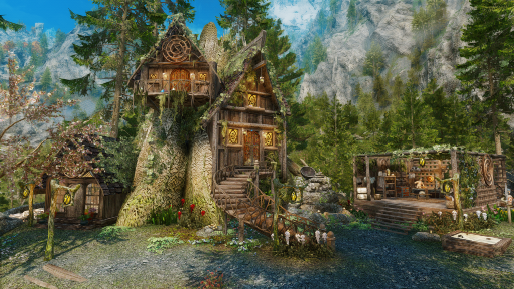 イーストマーチ地方の西側、クレイドルクラッシュ・ロックの隣におしゃれな家を追加するMODです。庭にお風呂があります。