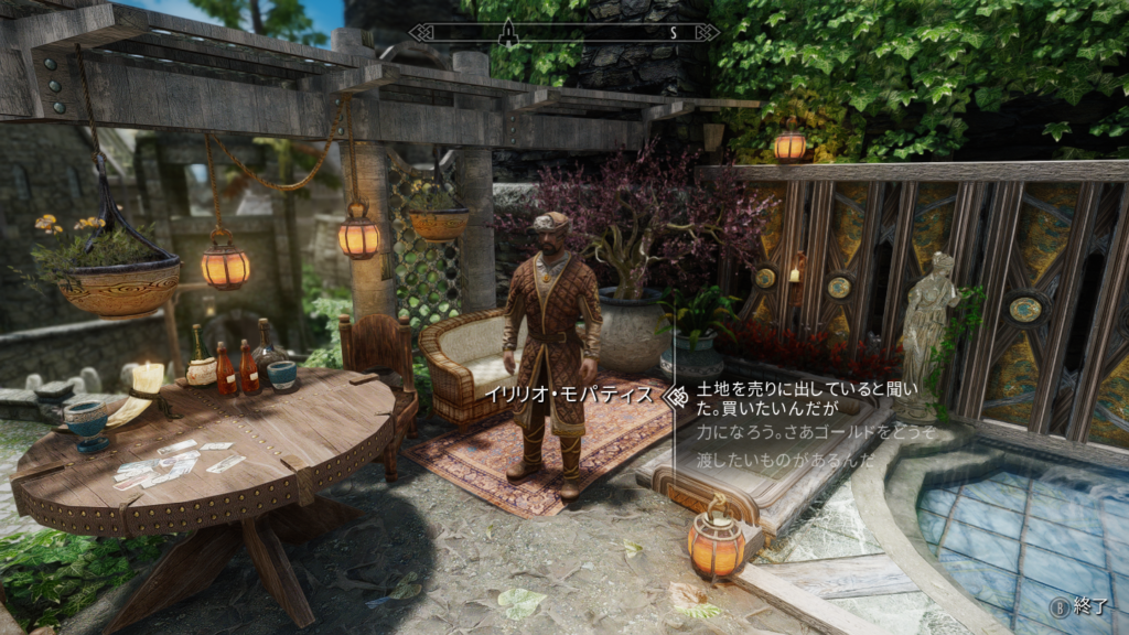 ソリチュードの内部、大きな石橋や死者の間近くに家が追加されます。敷地内にいる追加NPC、イリリオ・モパティスに話しかけ、購入代金である15,000ゴールドを支払います。