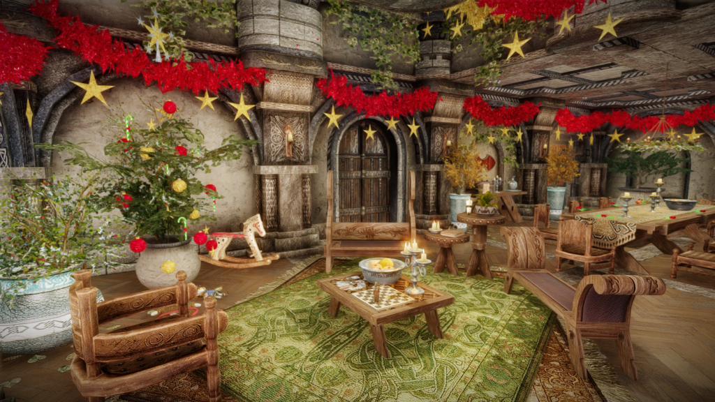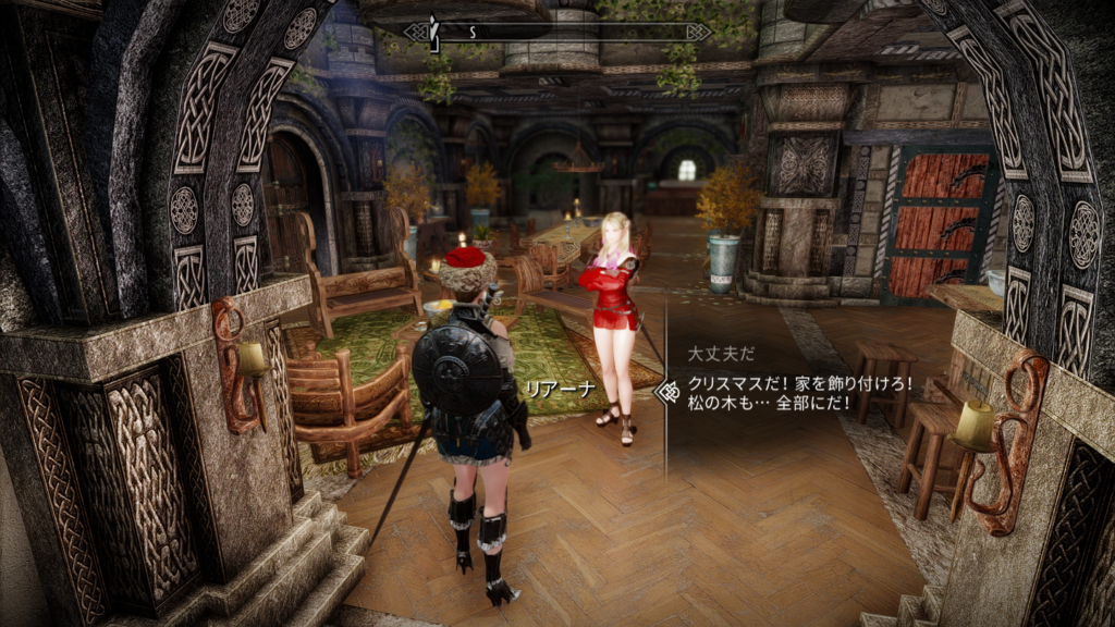 家の中にあるサンタ帽をかぶった状態で執政に話しかけると、クリスマス用の会話が追加されます。