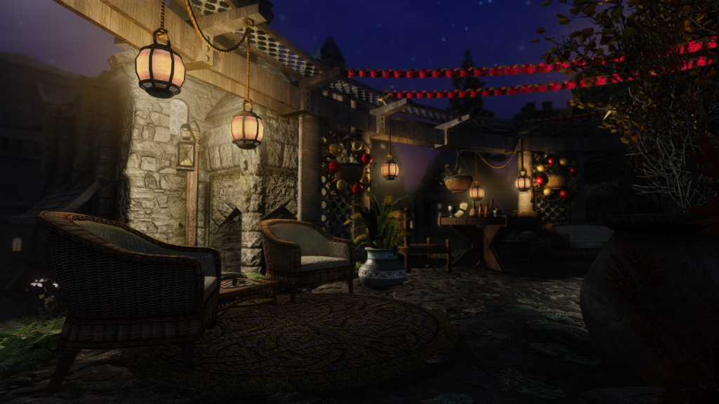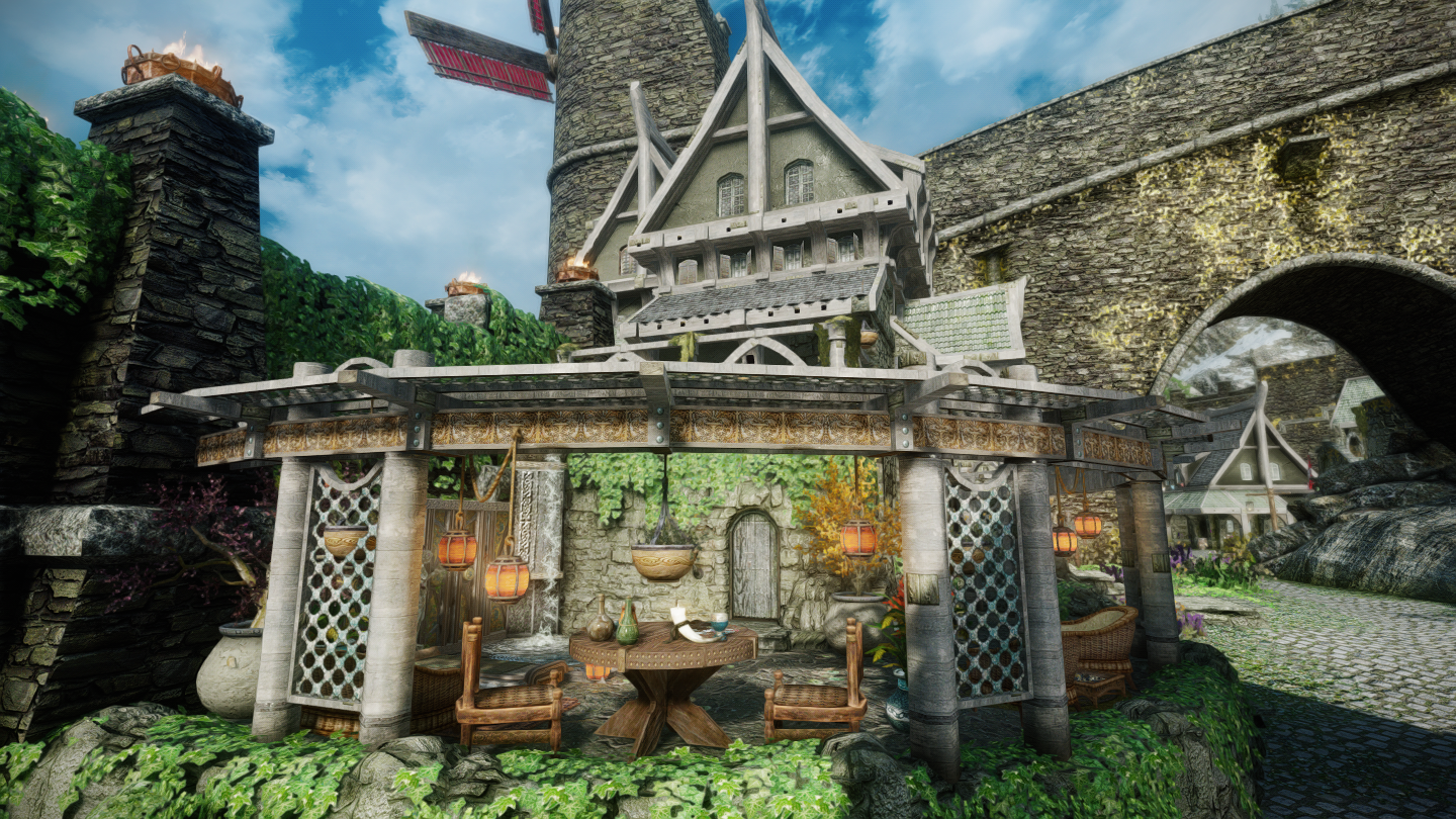 ハーフィンガル地方・ソリチュードの街中に美しい庭付きの家を追加するMODです。屋内にお風呂が2箇所あります。独自の移住・執政雇用システムや、クリスマスの飾り付け機能付きです。