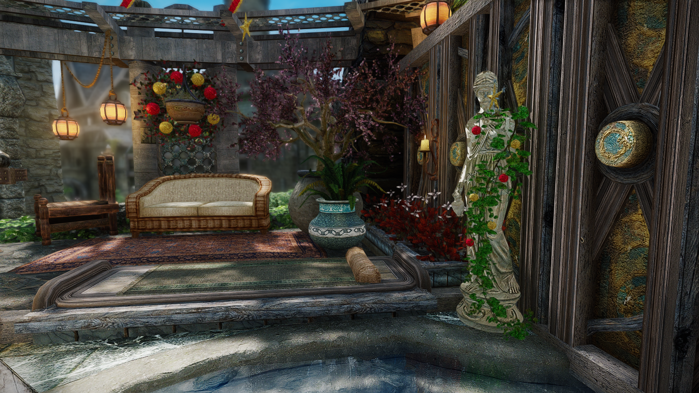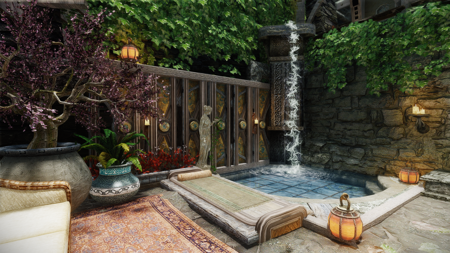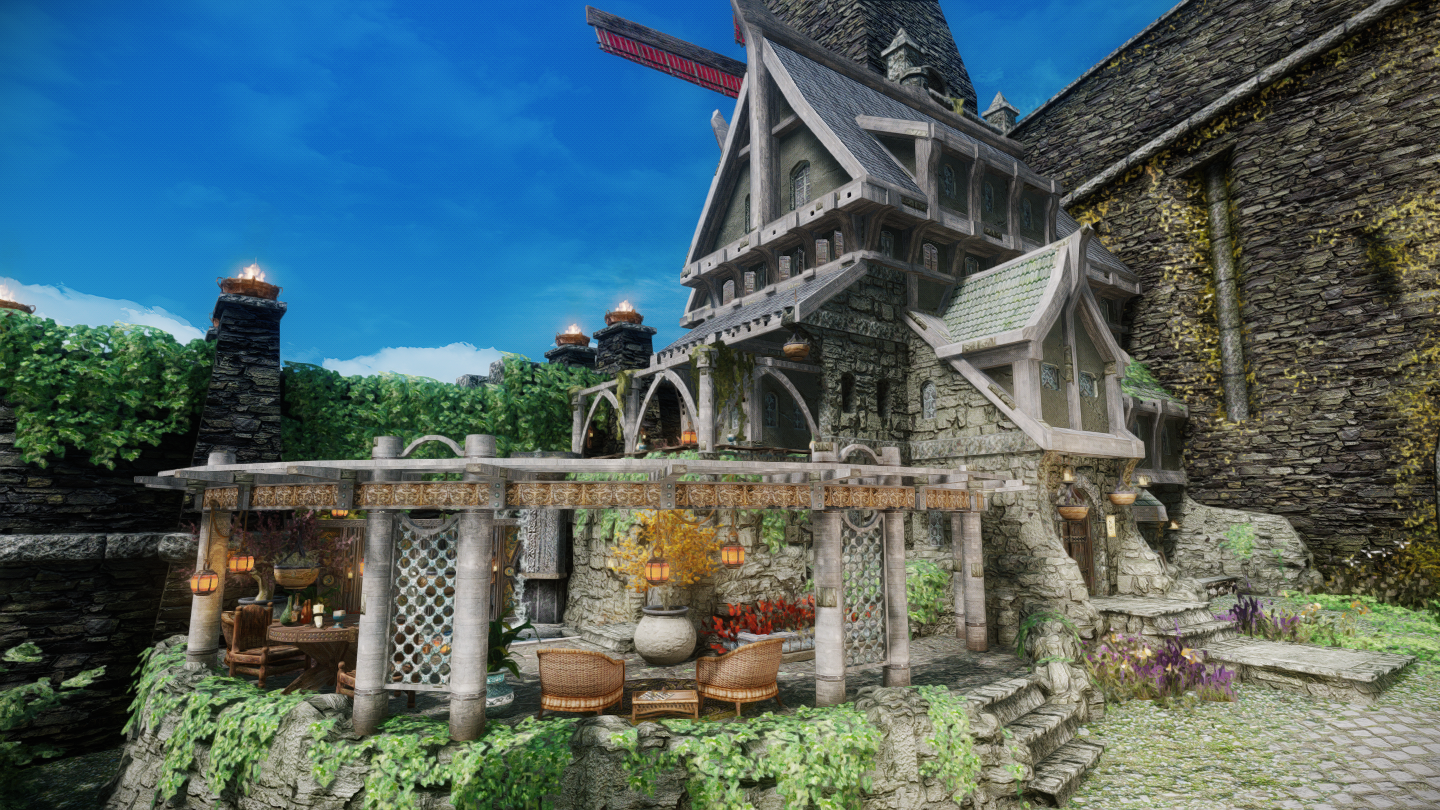 ハーフィンガル地方・ソリチュードの街中に美しい庭付きの家を追加するMODです。屋内にお風呂が2箇所あります。独自の移住・執政雇用システムや、クリスマスの飾り付け機能付きです。