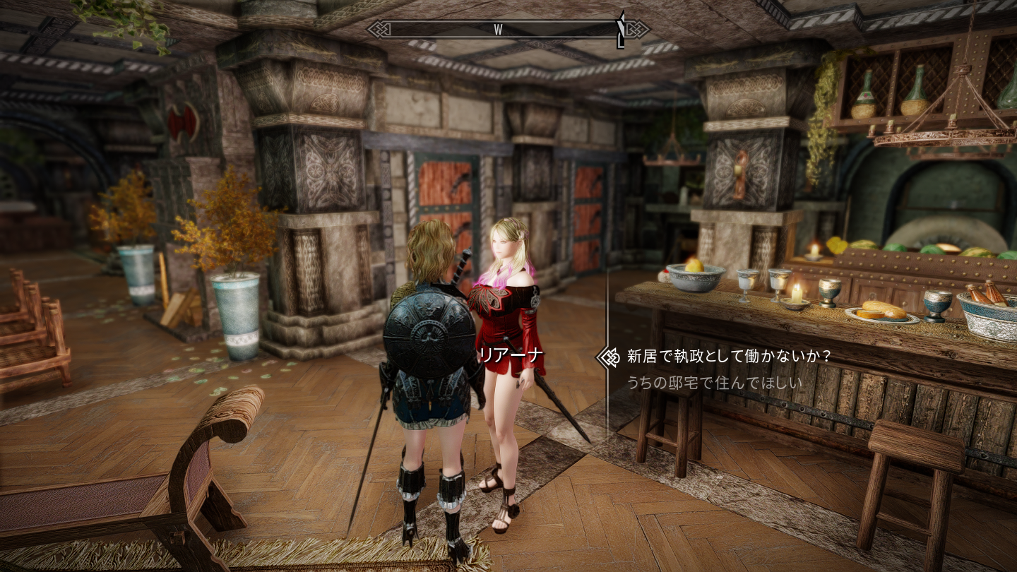 会話ダイアログからフォロワーやNPCをこの家の執政に任命したり、この家に住んでもらうことができるようになります。フォロワー以外のNPCは友好度が低いと選択肢が出なかったり、定住や任命などをお願いしても断られるかもしれません。