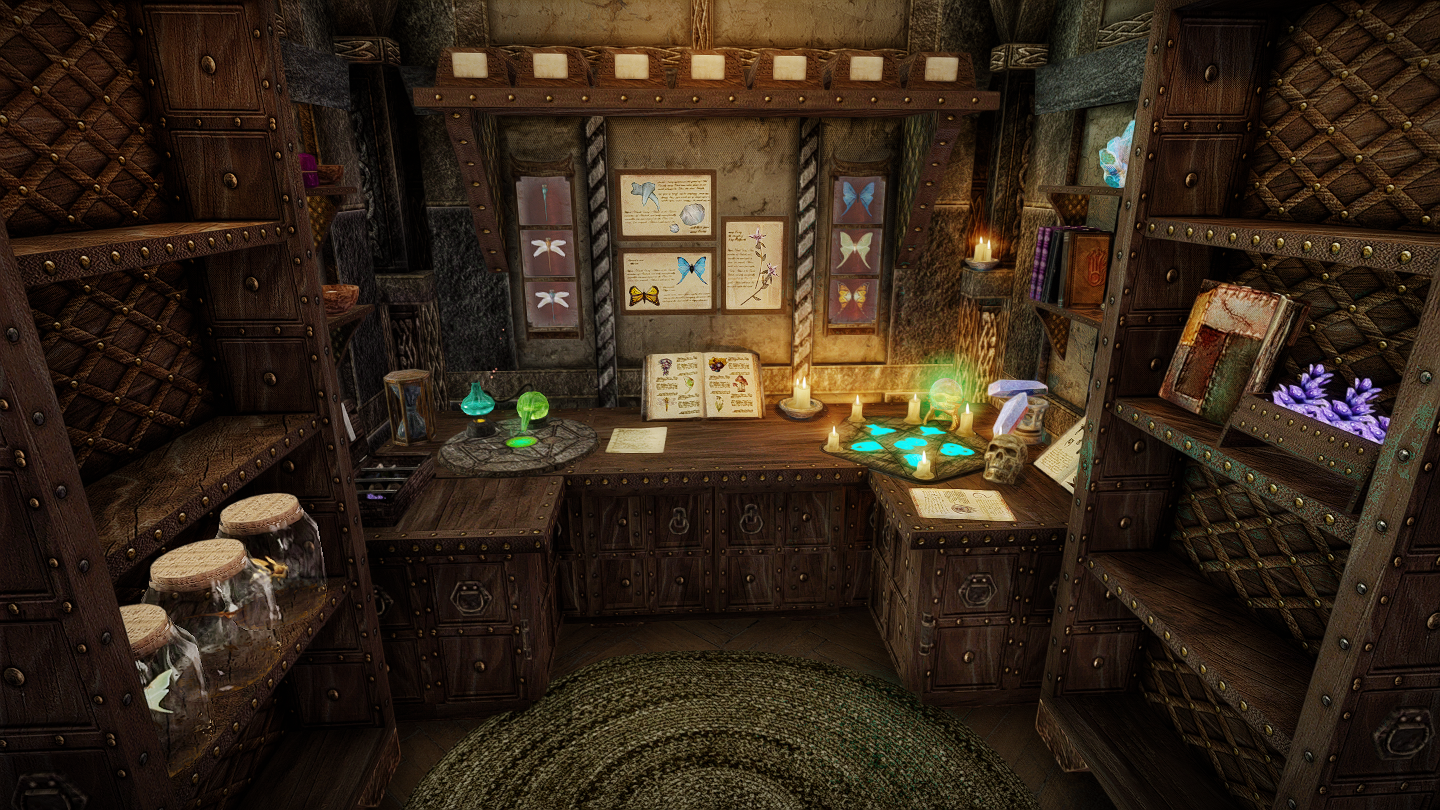 ハチ入りの瓶や、アーティファクトの一つであるオグマ・インフィニウムなどを飾れる本棚があります。画像では実際に飾っています。また、正面上の棚が肥沃土になっています。