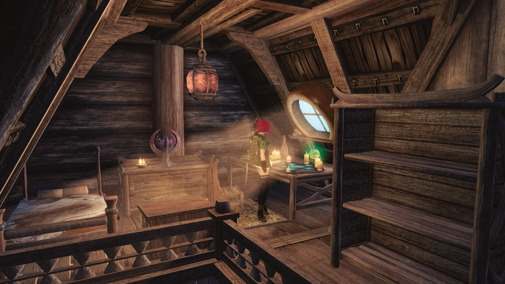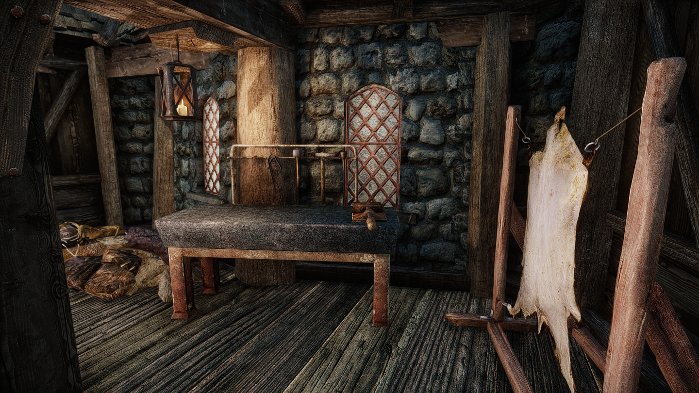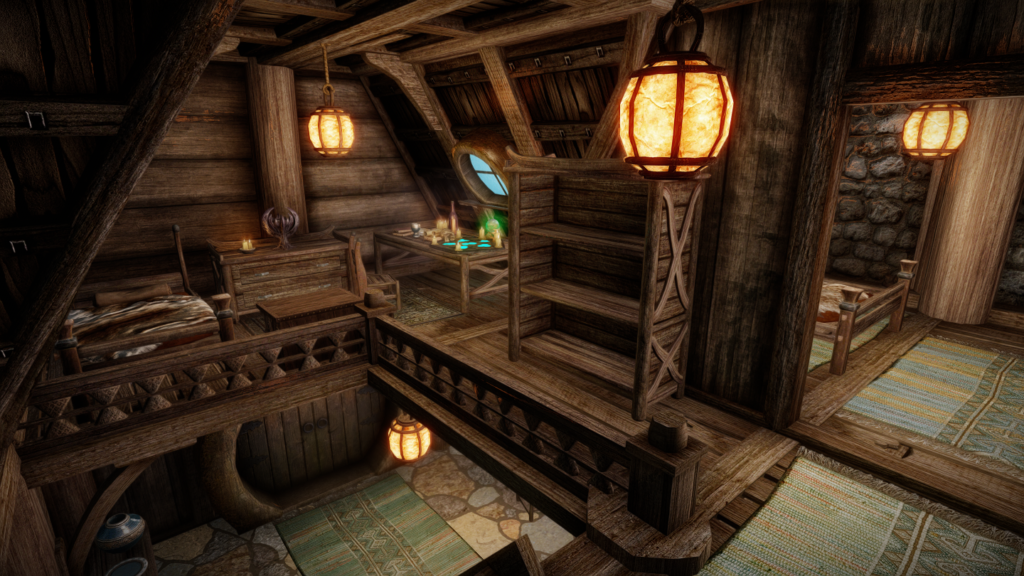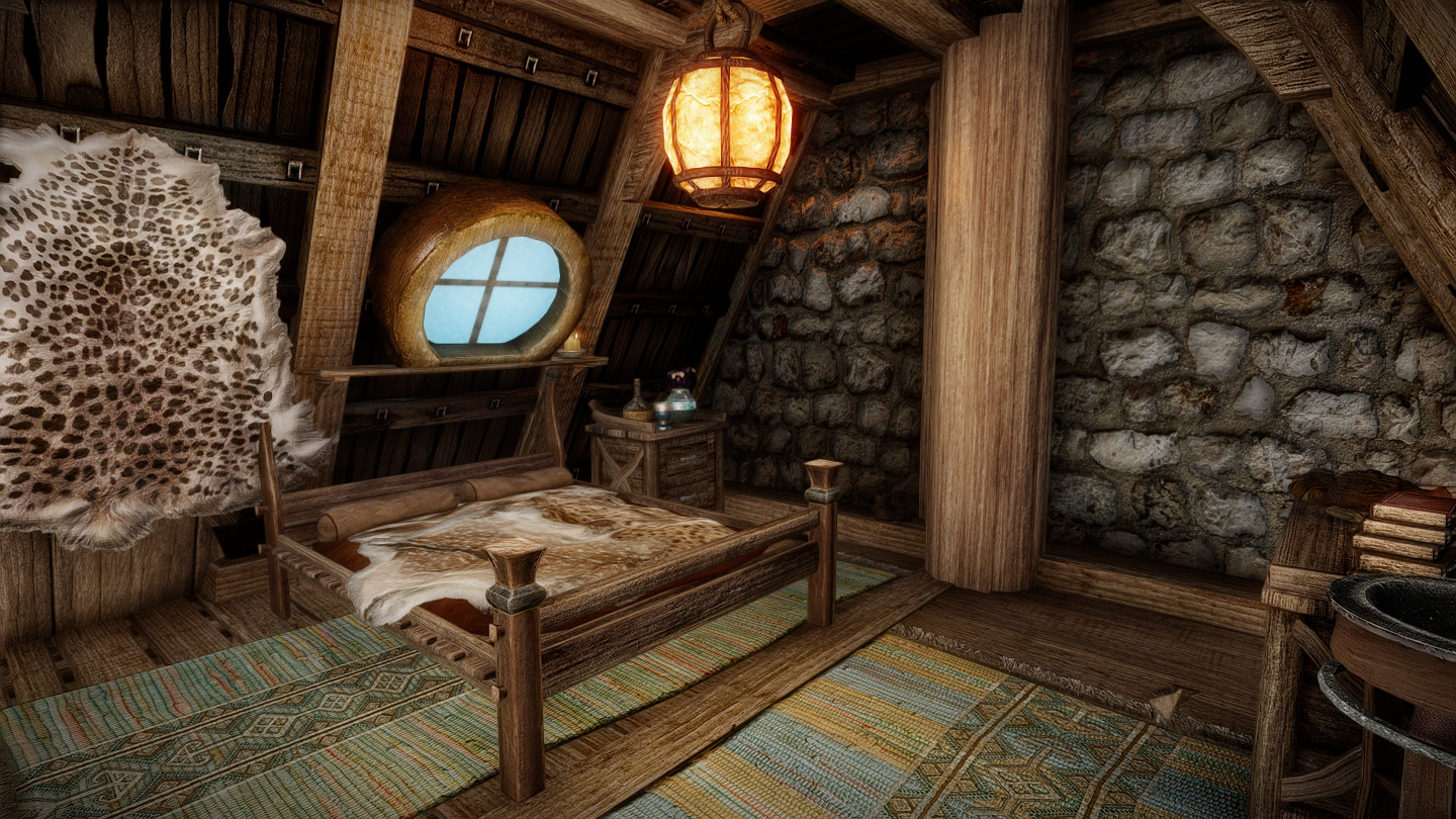 モロウウィンド風の装飾をしたおしゃれな宿屋です。ホワイトランやレイクビュー邸から寄り道をしつつ西側へ歩いているとこの辺りでいい時間になってくるので、休憩や宿泊にはもってこいの場所にあると思います。