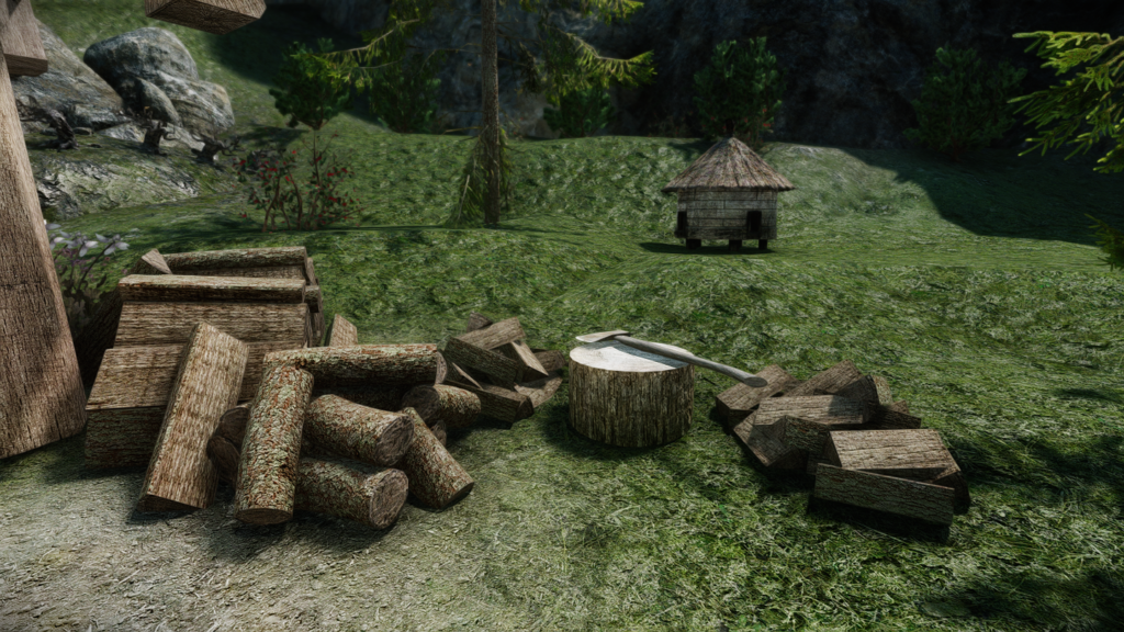 厩/砥石/金床/薪割り台/作業台/皮なめしの棚/薪割り台/養蜂場
