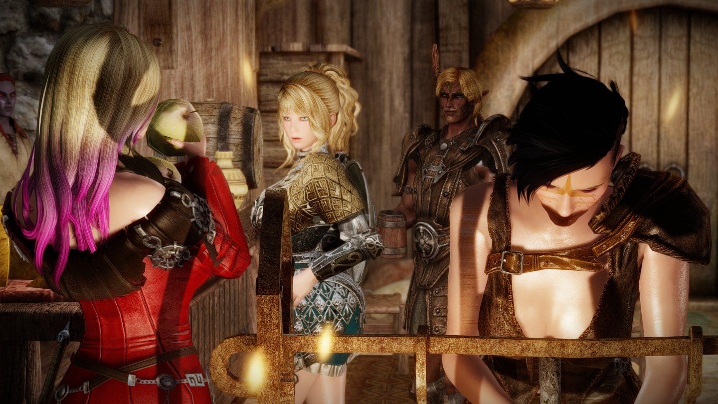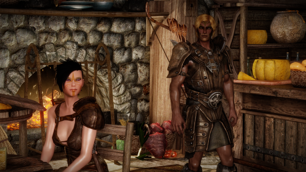 宿と食事の提供をしてくれる、結婚可能なダンマーの兄妹(画像1,2枚目)と、フォロワー化可能な客のNPC(画像3枚目の2人)がいます。