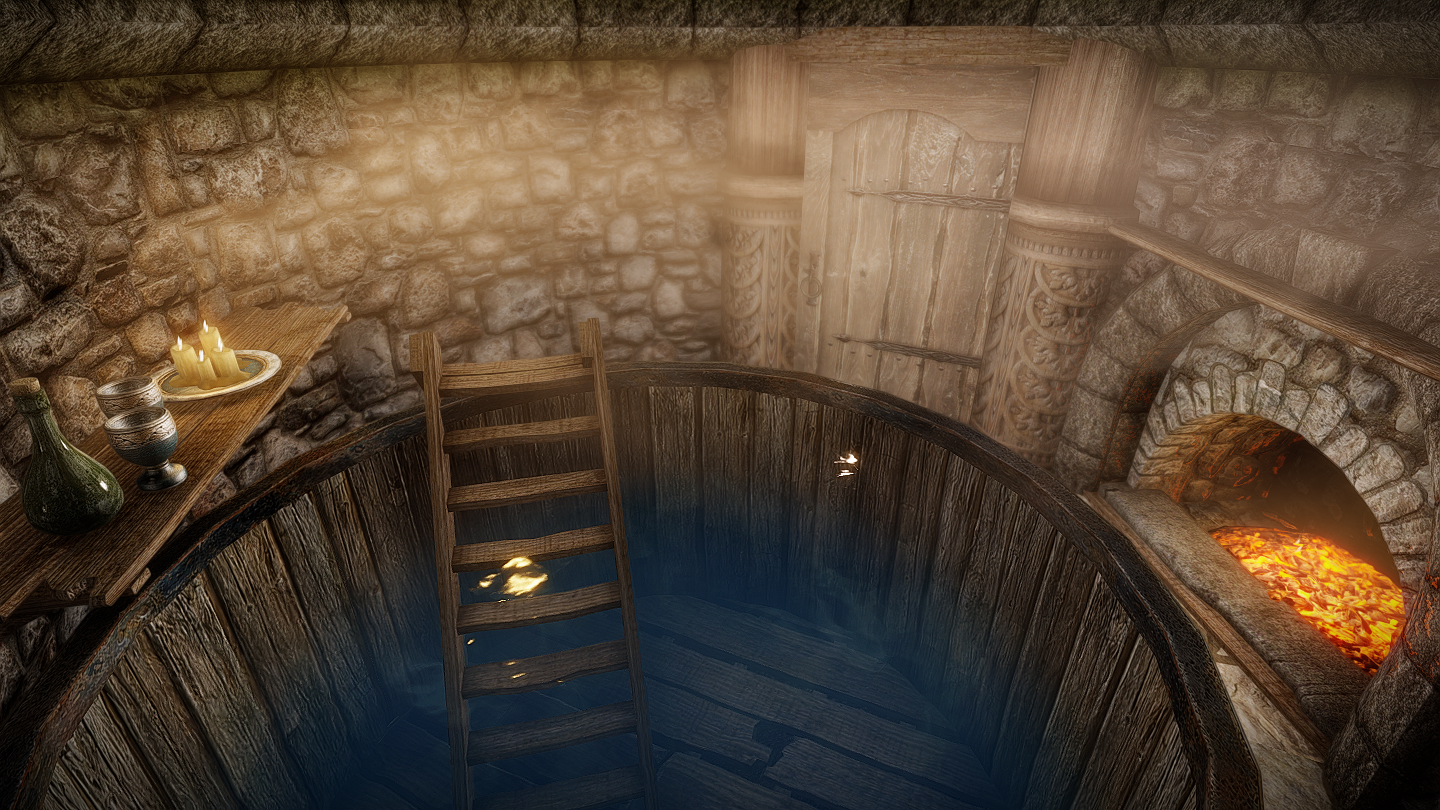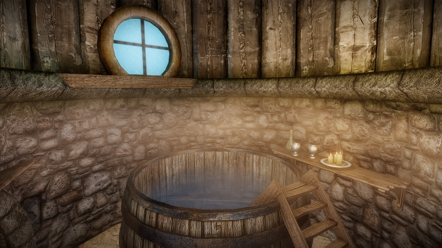 リーチ/ホワイトラン/ファルクリース地方の境界付近に、モロウウィンド風の宿屋と、結婚やフォロワー化可能なNPCを追加するMODです。屋内にお風呂があります。