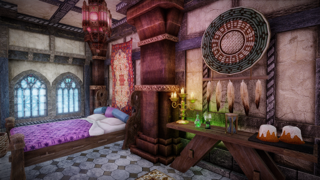 それとなくピンク色な酒場MODです。この手のMODは導入が大変そうなイメージが何となくありましたが、前提MODがすでに導入しているものばかりだったので気軽にお邪魔することができました。