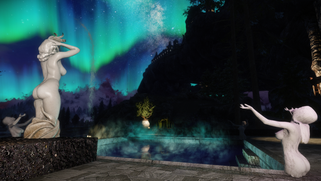 プール・お風呂共に、NPCには装備の自動着脱機能が付いているようです。プールの近くと内風呂がある部屋の入口辺りで、NPCが着替えられているのを見かけました。