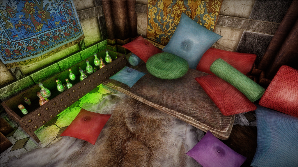 休息の薬や持久の霊薬、スクゥーマなどが数多く置かれている部屋です。勿論こちらにあるポーションたちも使いたい放題です。