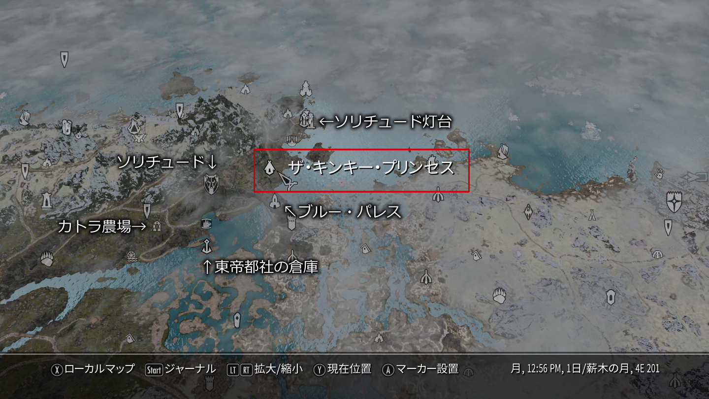 導入直後にマップマーカーが表示されるのでそのままFT可能です。ソリチュードの天然アーチをくぐってすぐのところにお店があります。