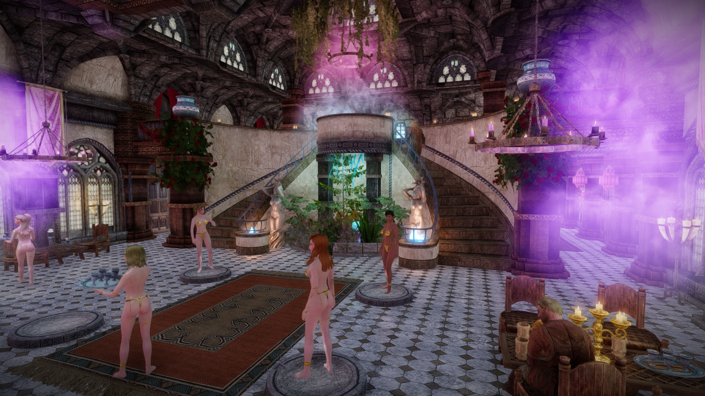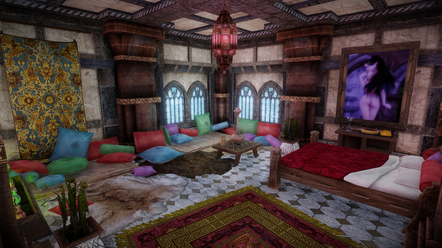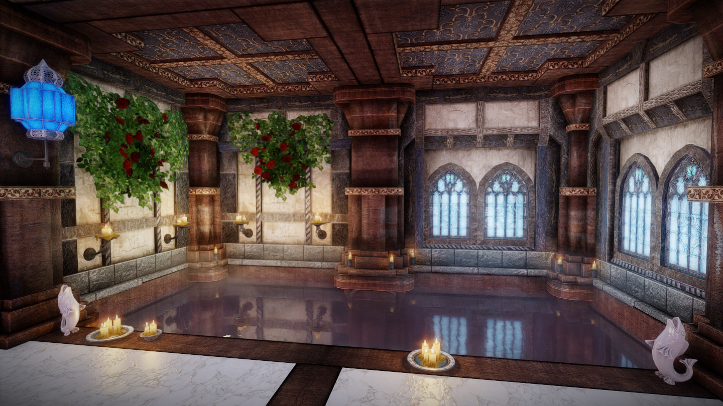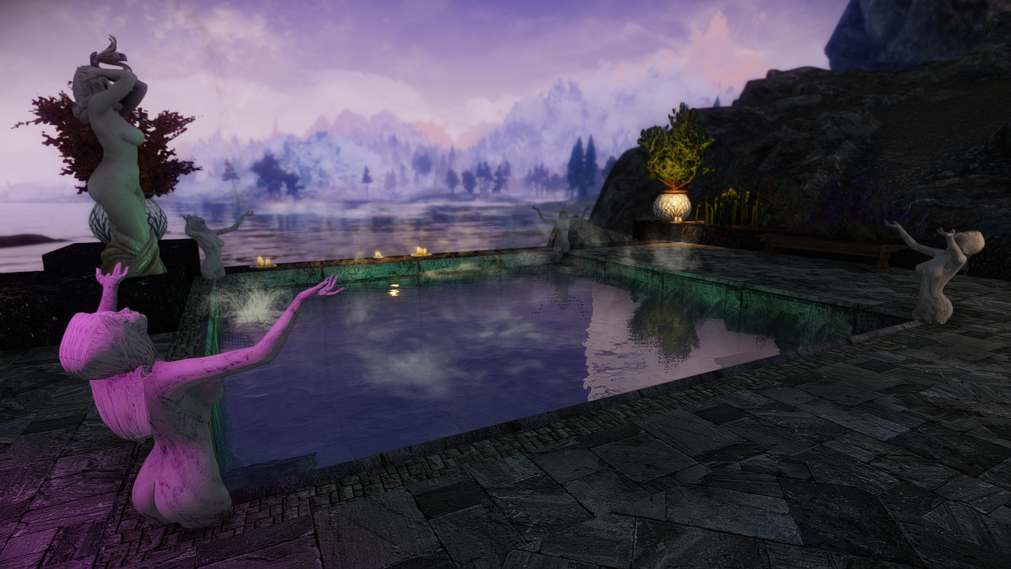 ハーフィンガル地方・ソリチュードのアーチの近くに、フォロワー候補のNPCや、それとなくピンク色の酒場を追加するMODです。屋外プールや内風呂、生産設備や自由に使えるベッドもあります。