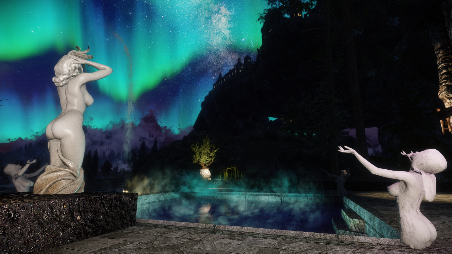 プール・お風呂共に、NPCには装備の自動着脱機能が付いているようです。プールの近くと内風呂がある部屋の入口辺りで、NPCが着替えられているのを見かけました。