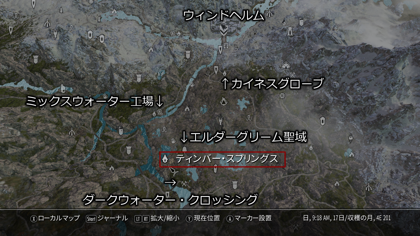 バニラのロケーションだと、イーストマーチにあるエルダーグリーム聖域やダークウォーター・クロッシングが最寄りです。