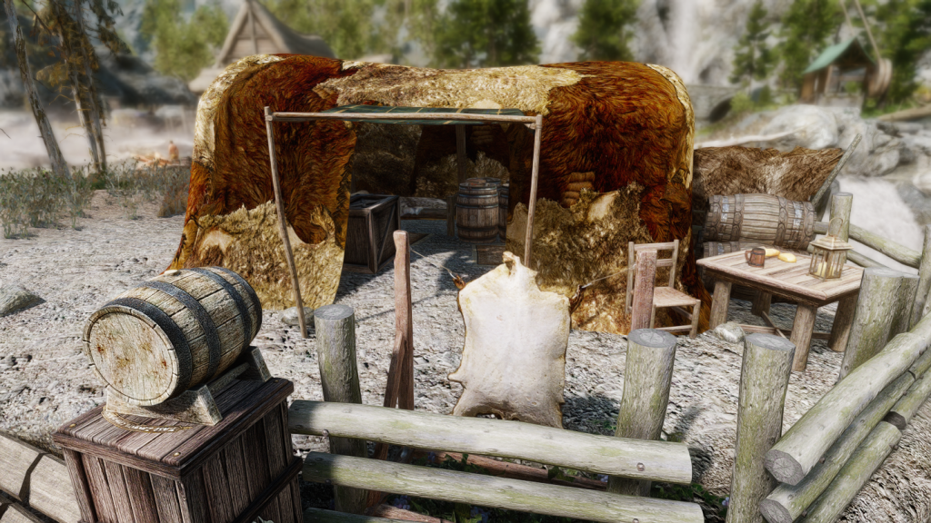バニラからある温泉や狩人のテント周辺に、いくつかの建物やテントなどが追加されています。