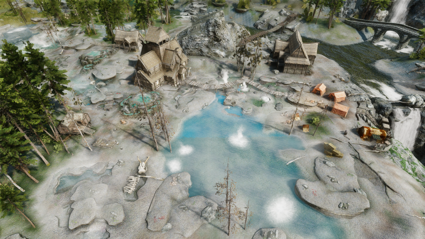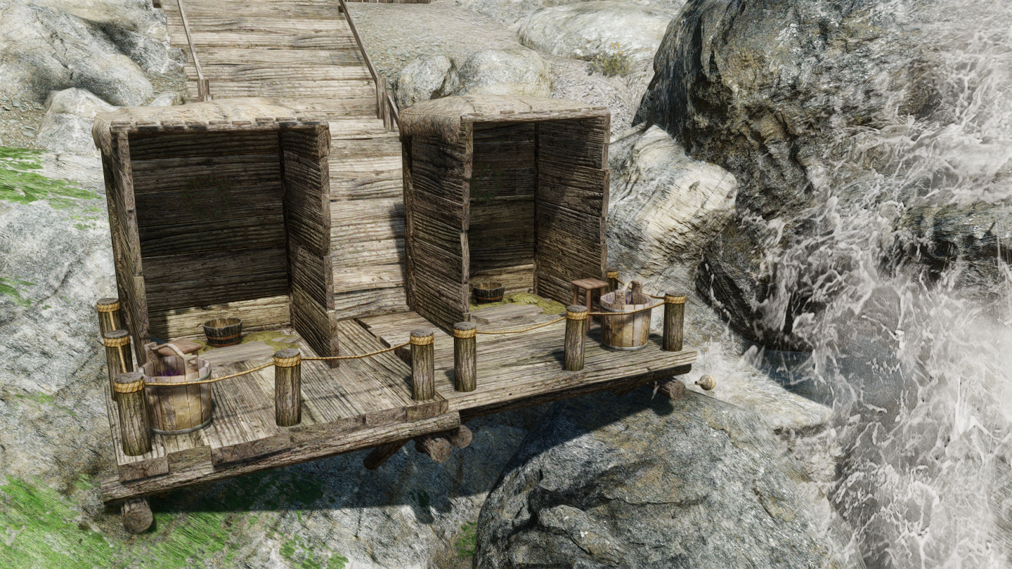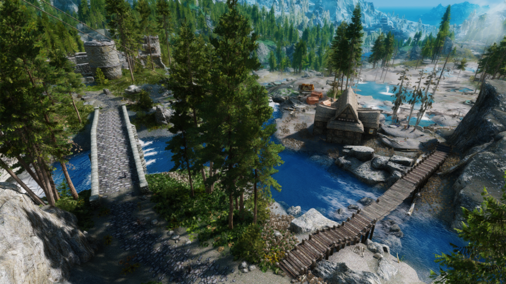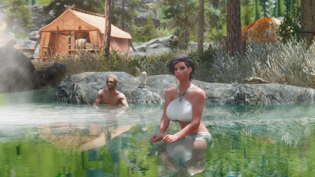 イーストマーチのダークウォーター・クロッシング近くの温泉地帯に、宿屋やNPCなどを追加するMODです。屋内浴場も追加されています。
