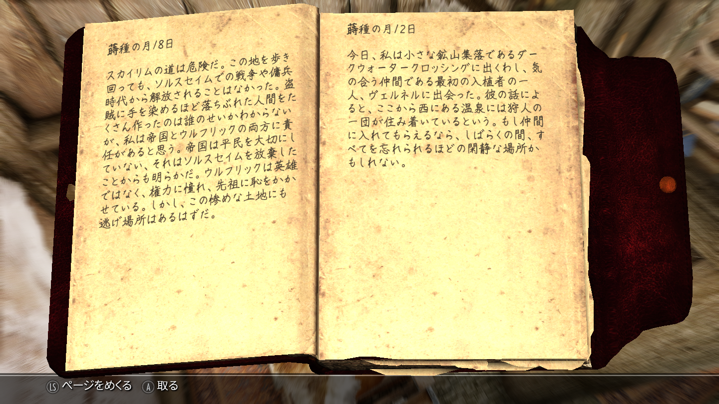 この一帯の創業者でもあるらしく、部屋にある日記にはこの温泉地帯に来るまでの経緯や今の心境などが記されていました。