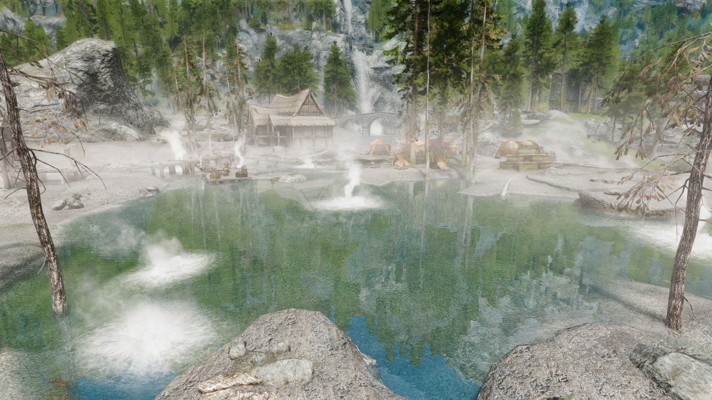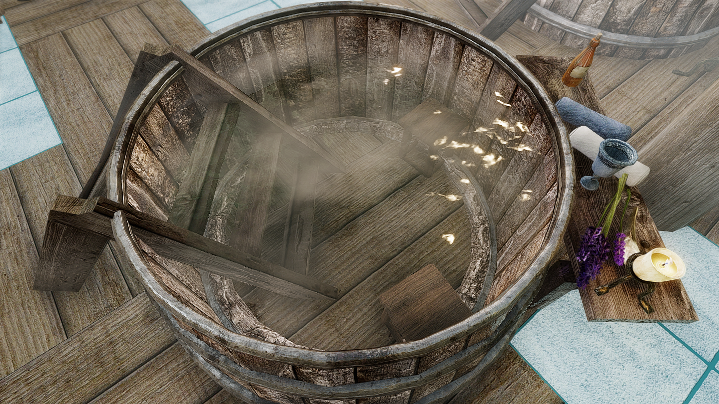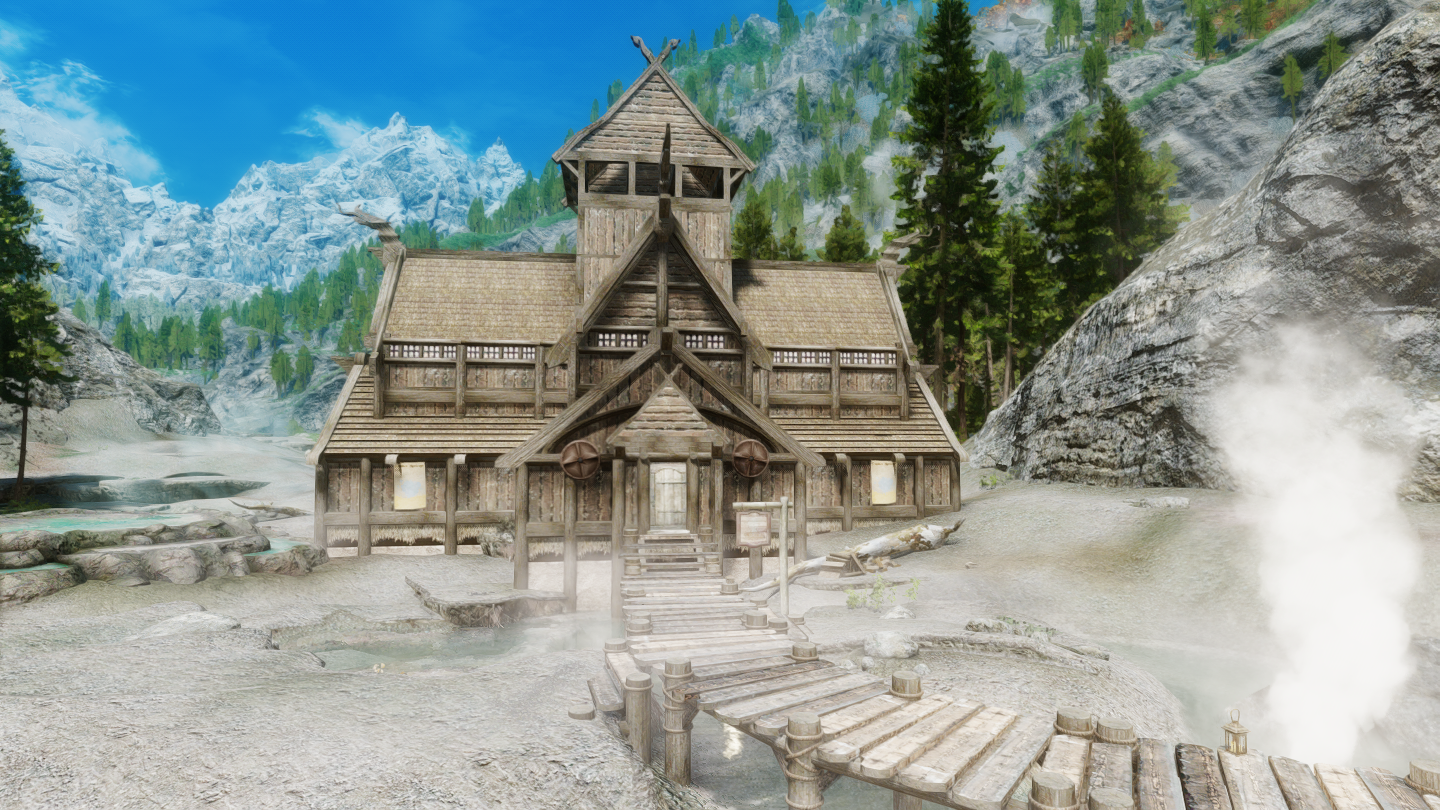 イーストマーチのダークウォーター・クロッシング近くの温泉地帯に、宿屋やNPCなどを追加するMODです。屋内浴場も追加されています。