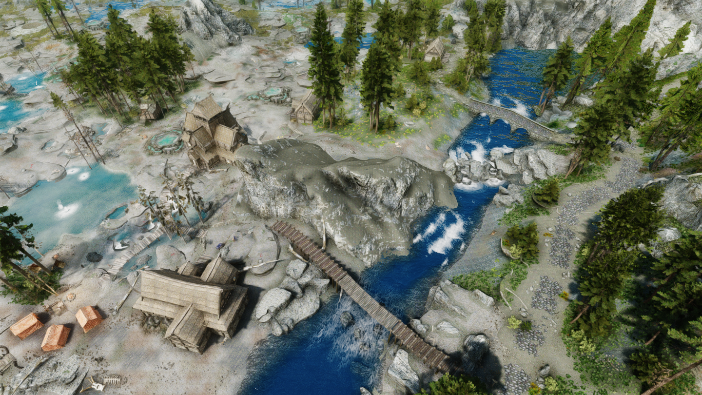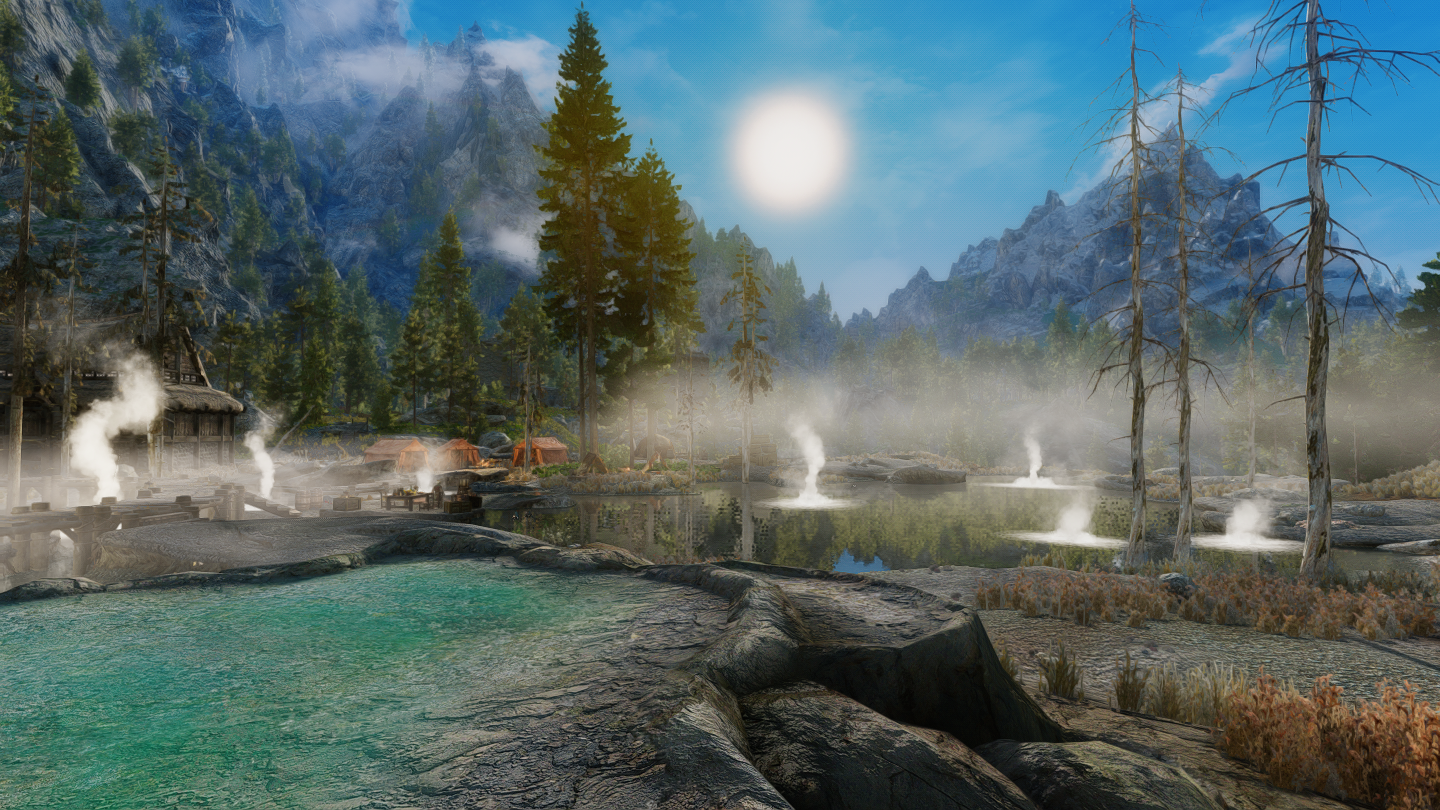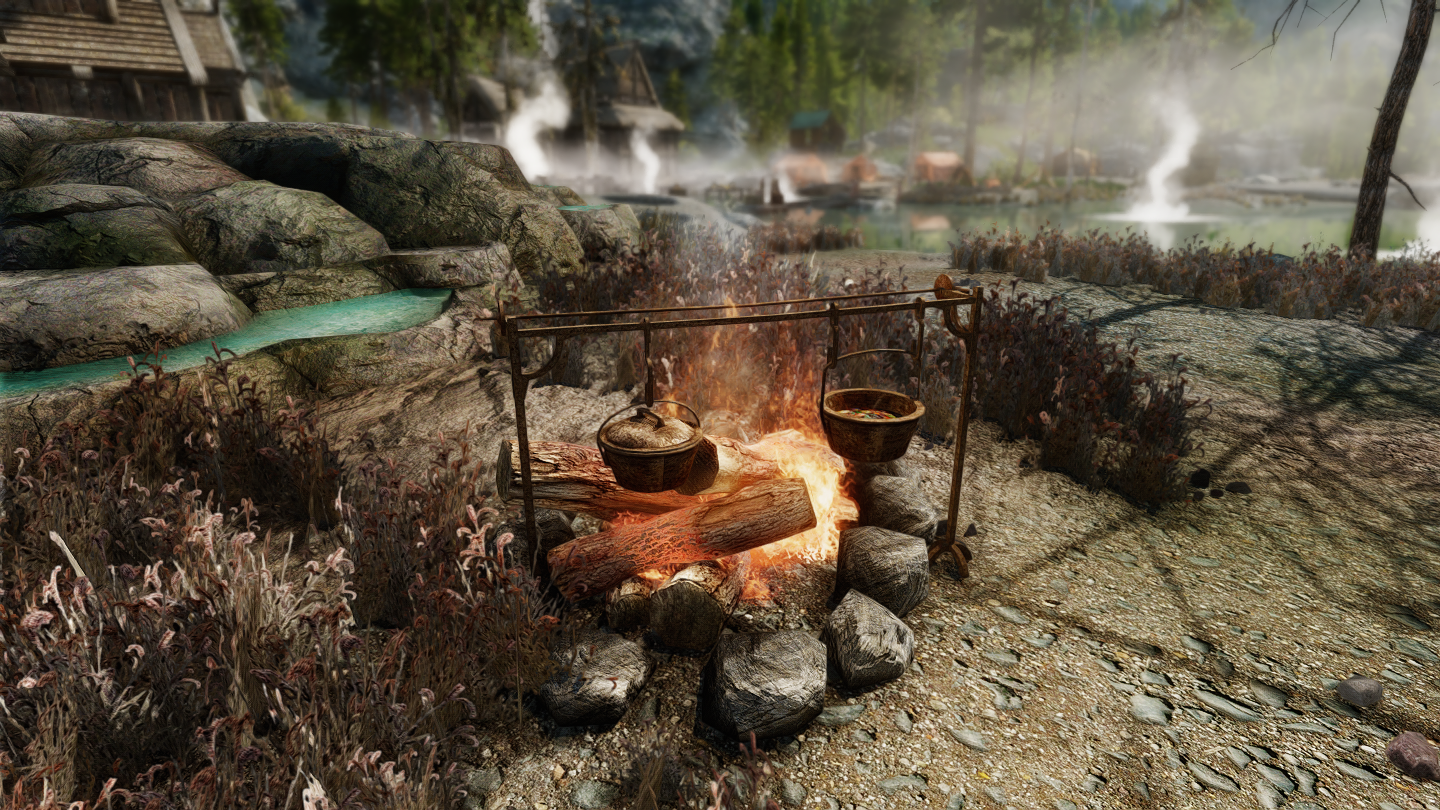 イーストマーチのダークウォーター・クロッシング近くの温泉地帯に、宿屋やNPCなどを追加するMODです。屋内浴場も追加されています。