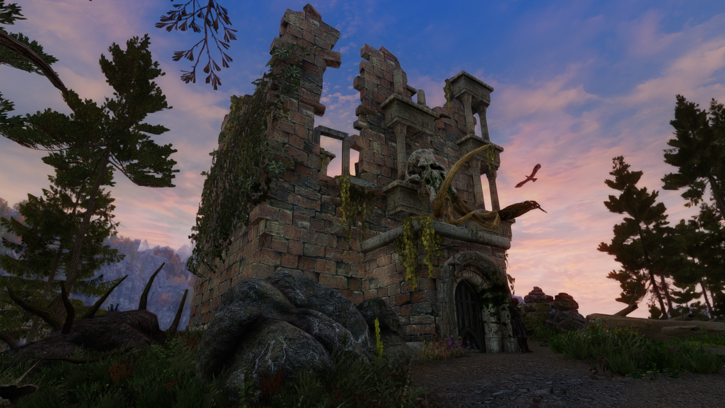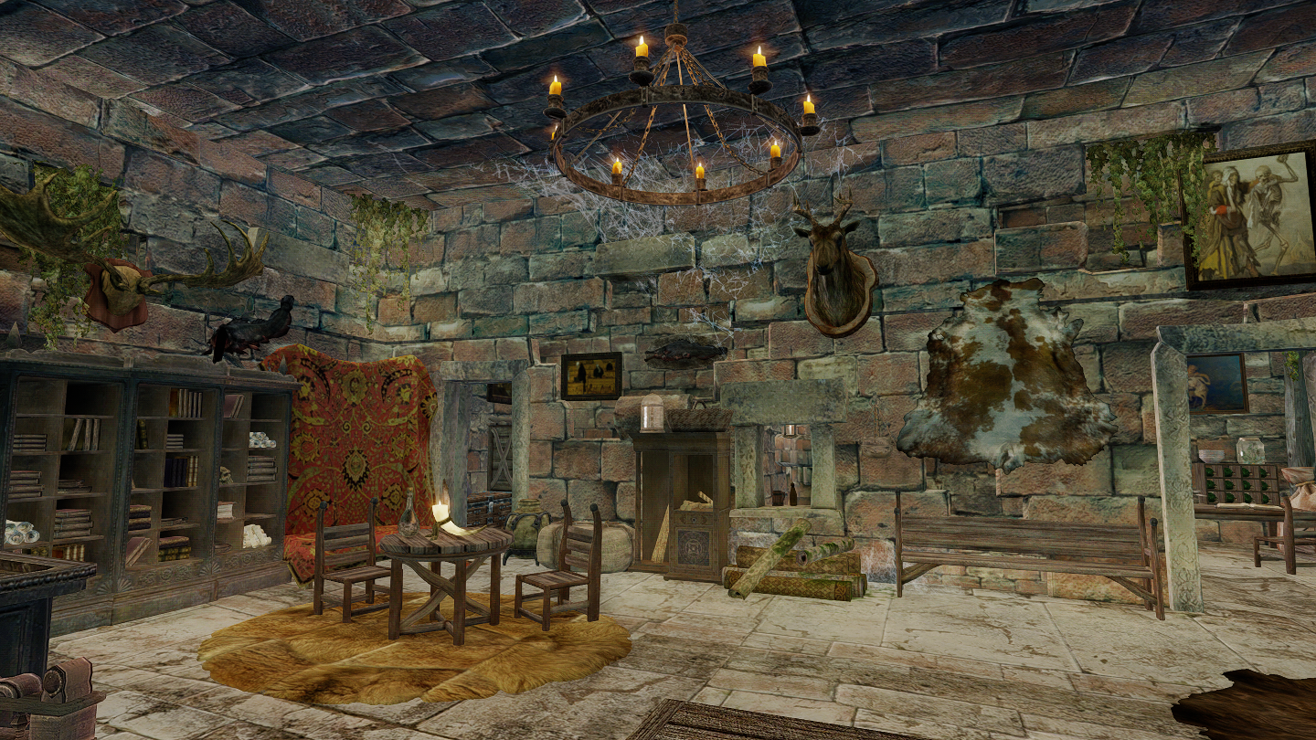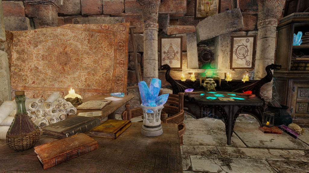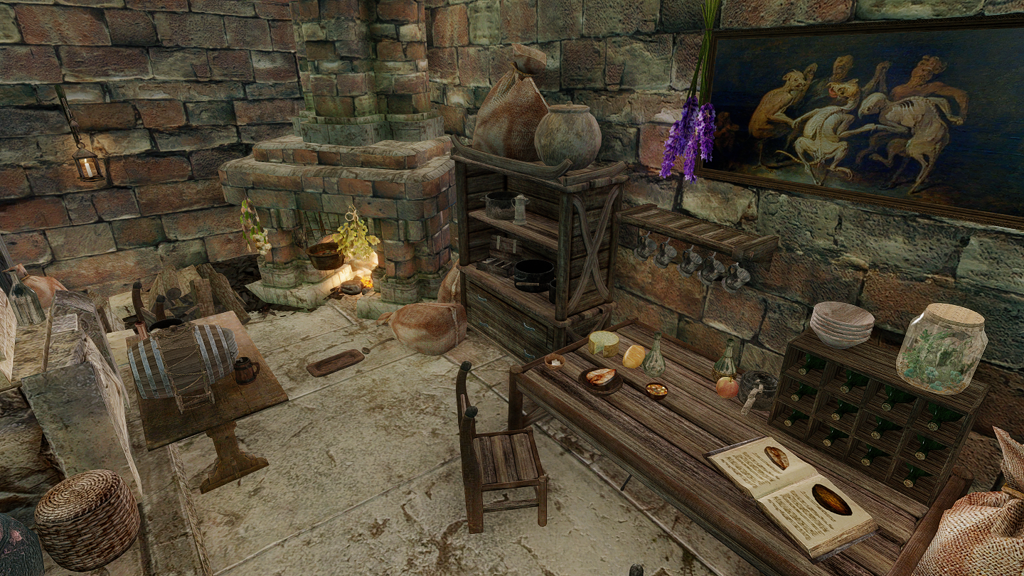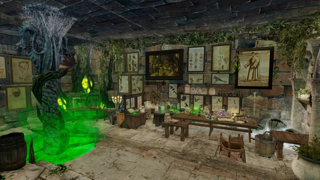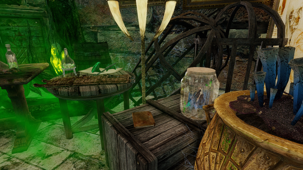 イーストマーチの東側・ムズルフトの近くに、廃砦風の家を追加するMODです。屋内は毒薬や疫病に関する研究室のような独特な雰囲気になっています。