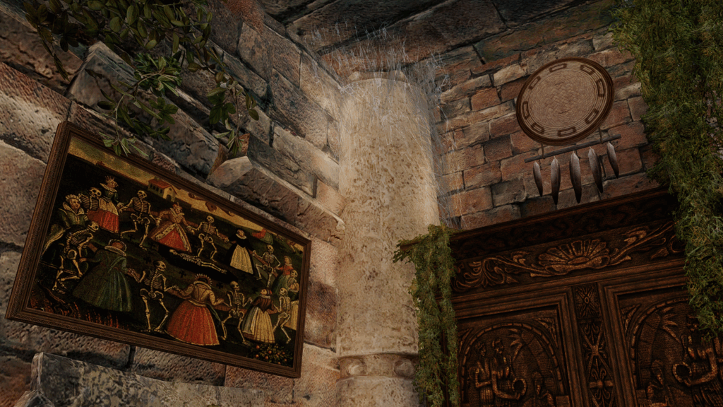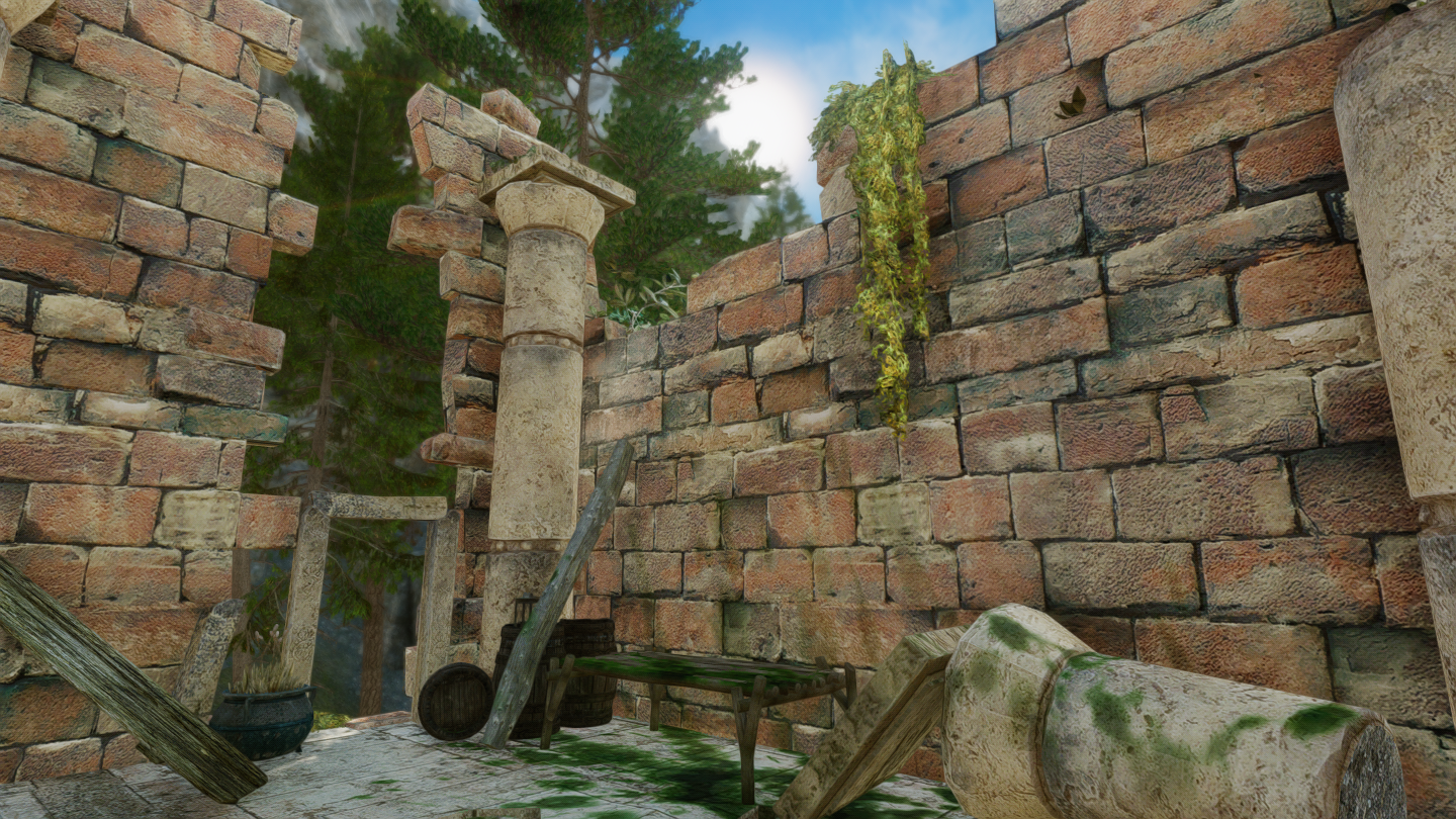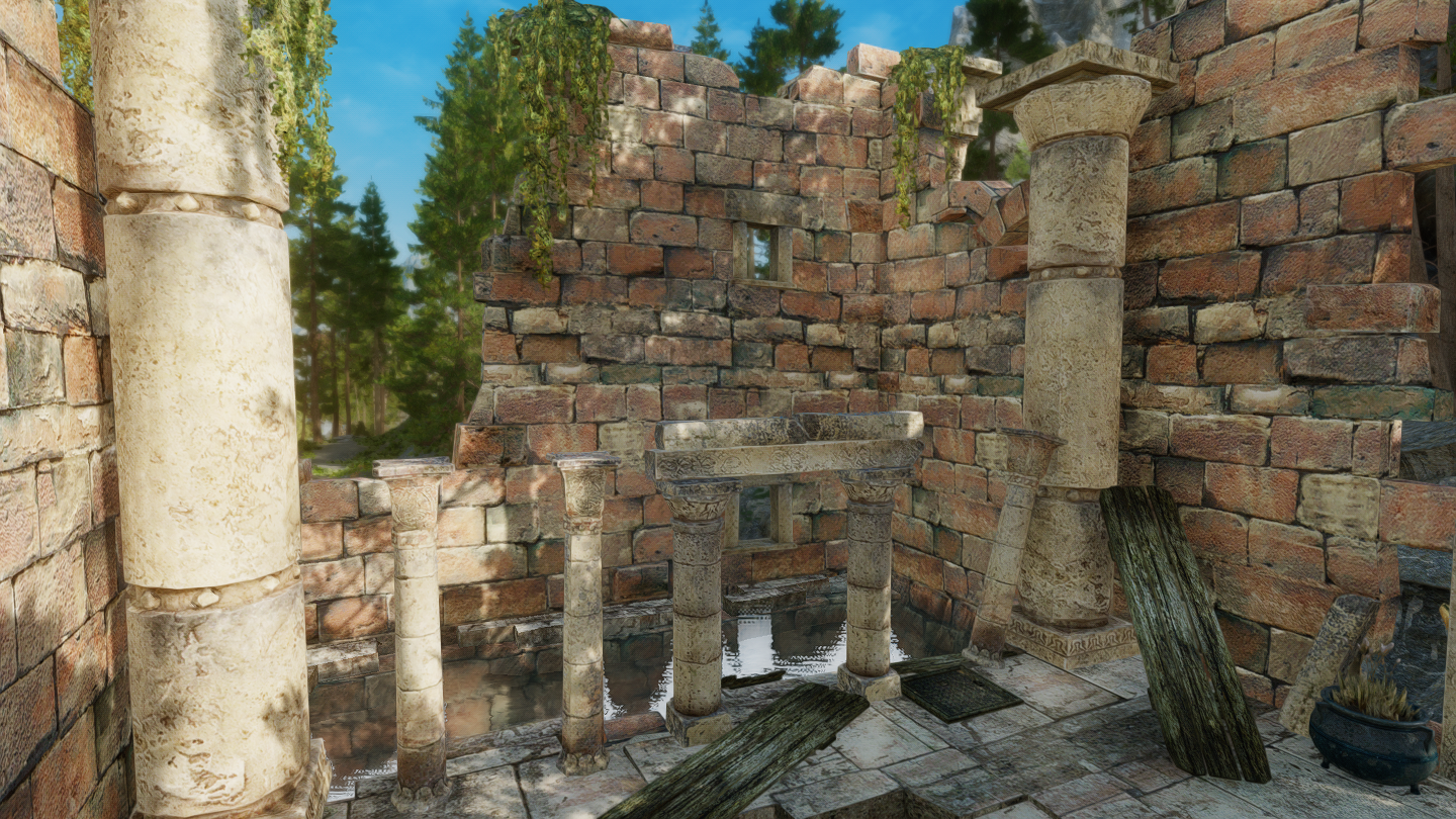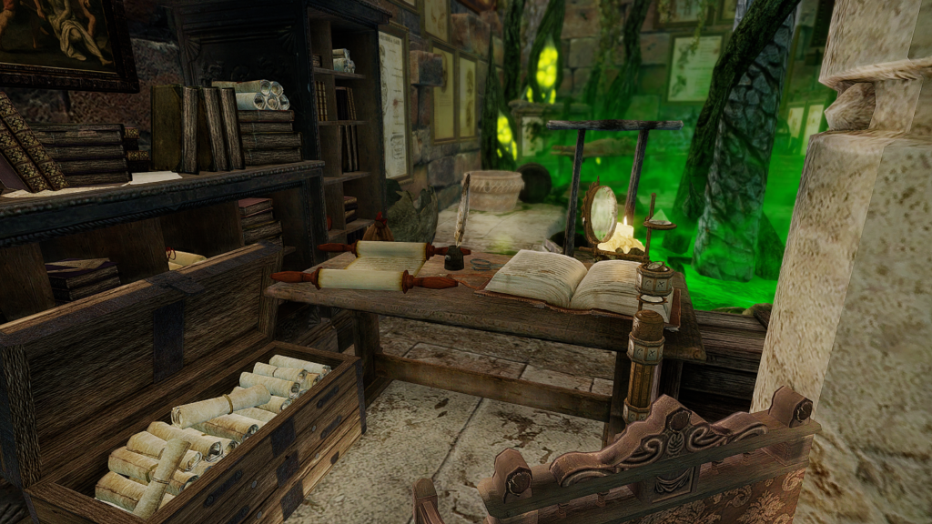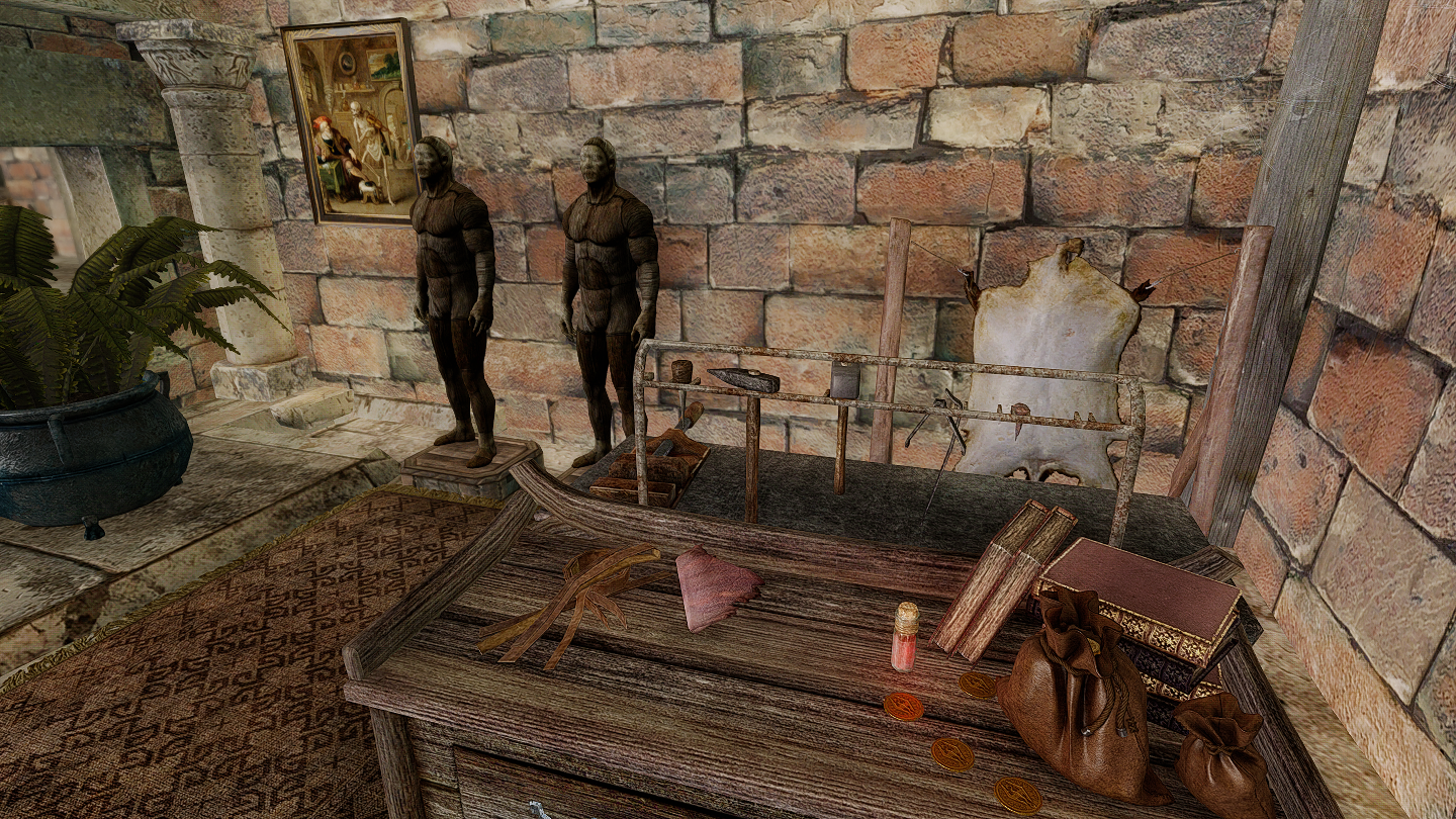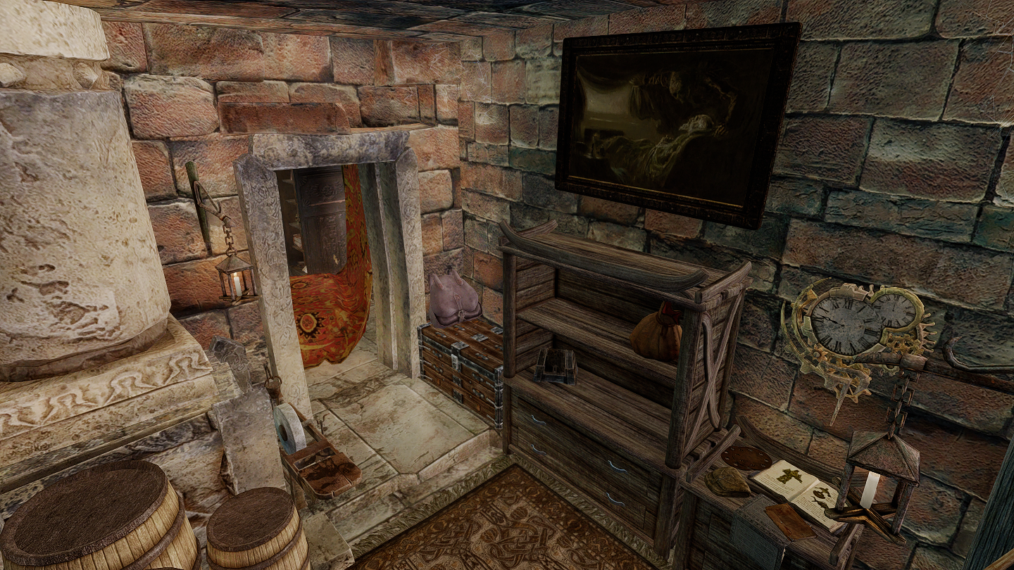 イーストマーチの東側・ムズルフトの近くに、廃砦風の家を追加するMODです。屋内は毒薬や疫病に関する研究室のような独特な雰囲気になっています。