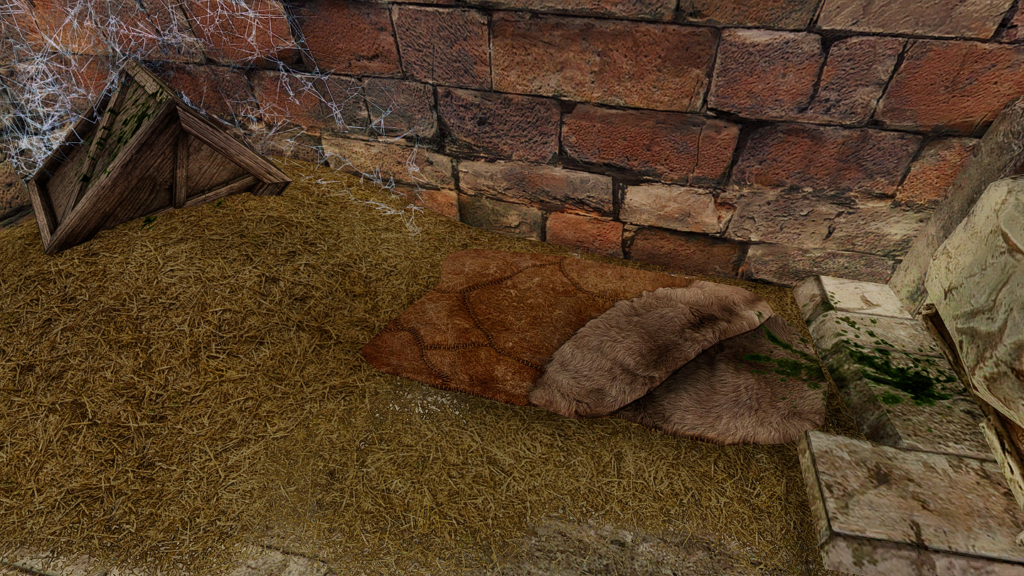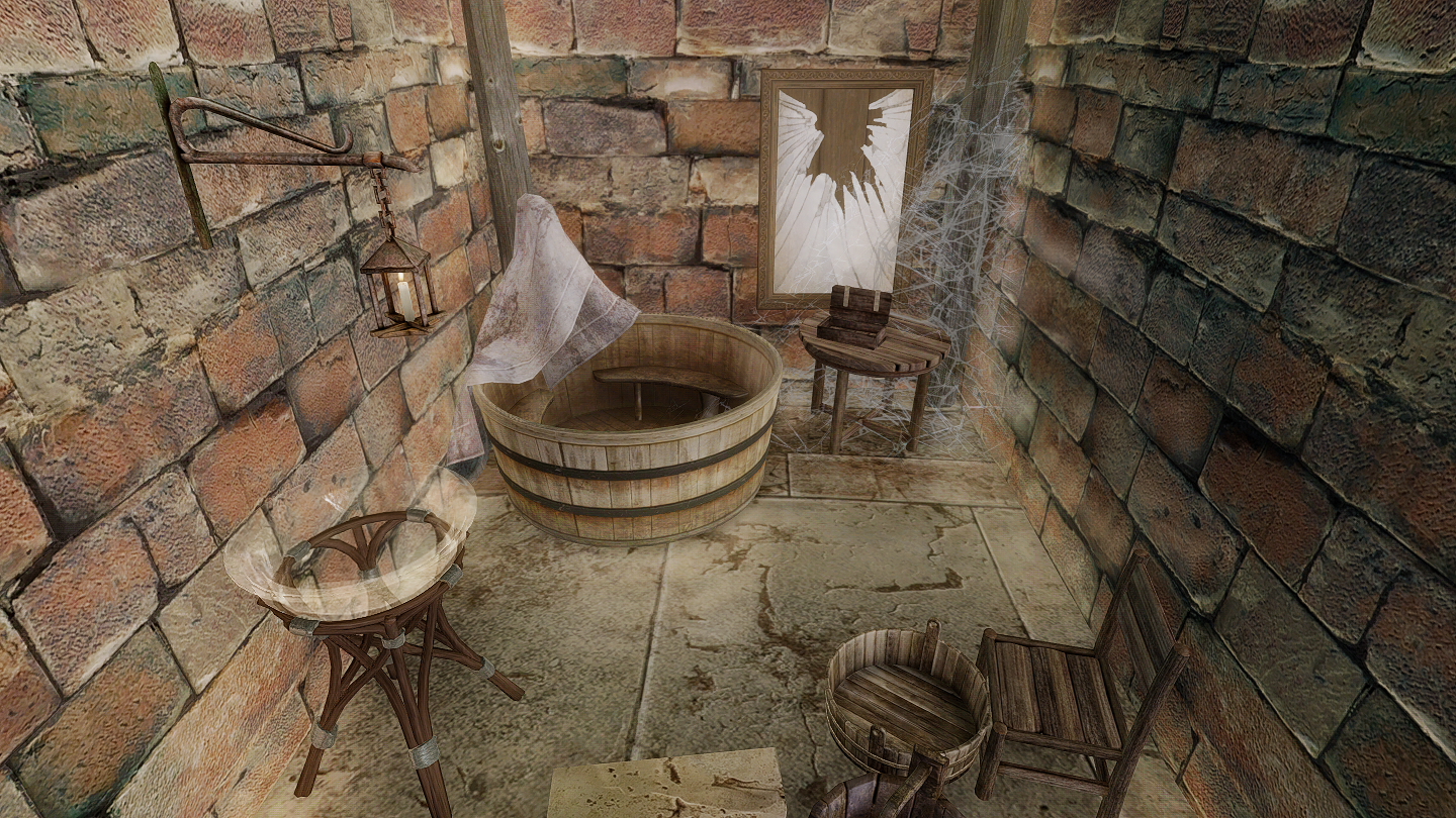 - 寝室:ダブルベッド×1/作業台/皮なめしの棚/マネキン